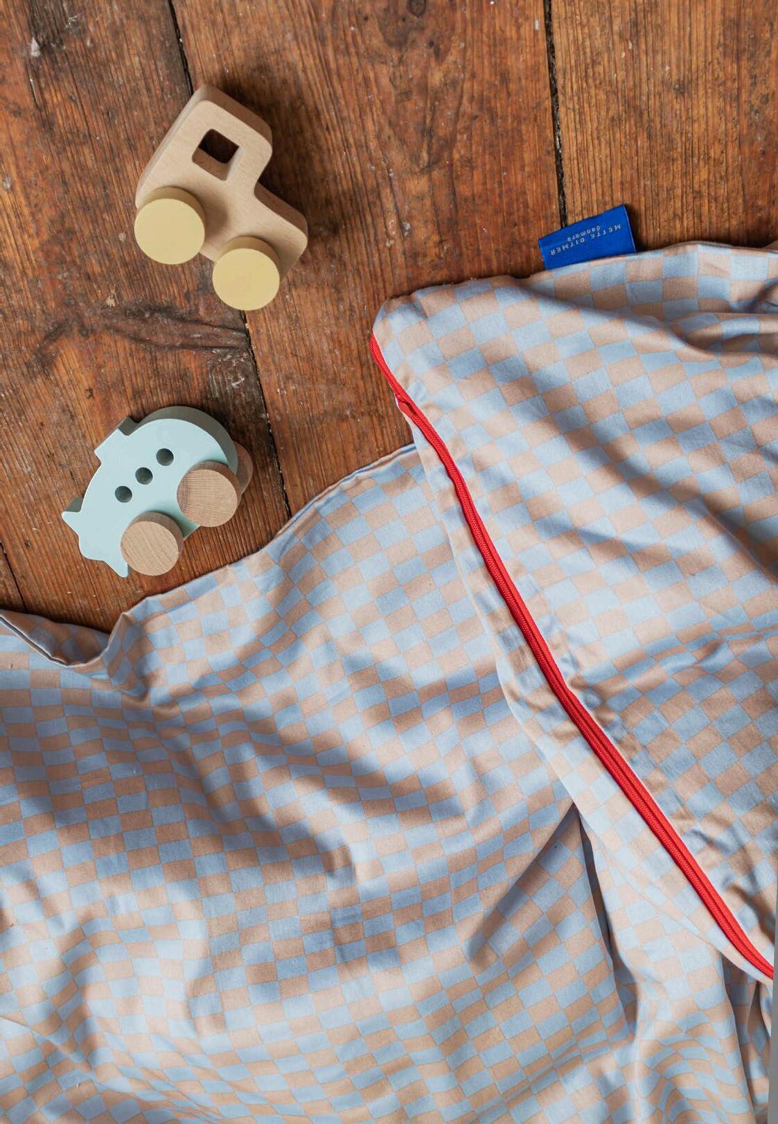 Made from 100% organic cotton in a silky satin weave, it offers a soft and gentle feel. A contrasting label and YKK-zipper add a fun, modern twist, seamlessly blending design and functionality with careful attention to detail.