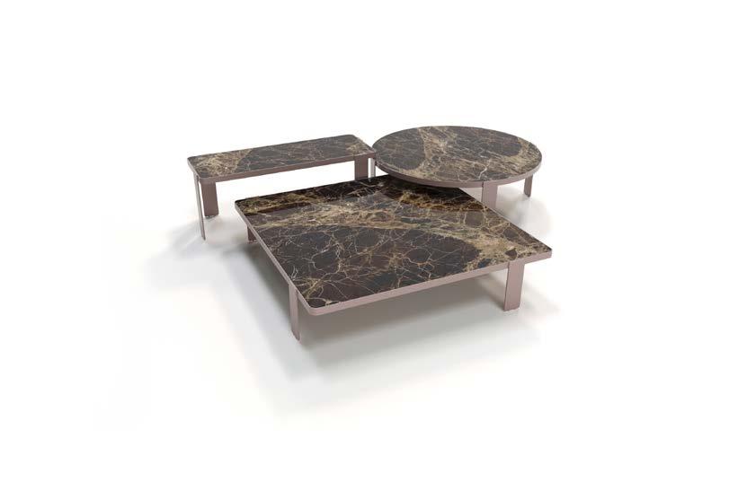 Na página anterior, peças expostas no iSaloni em Milão. De cima para baixo: Poltrona Almeria, Mesa Pisac, Mesa Santiago, Sofá Andros e Sofá Alladro.