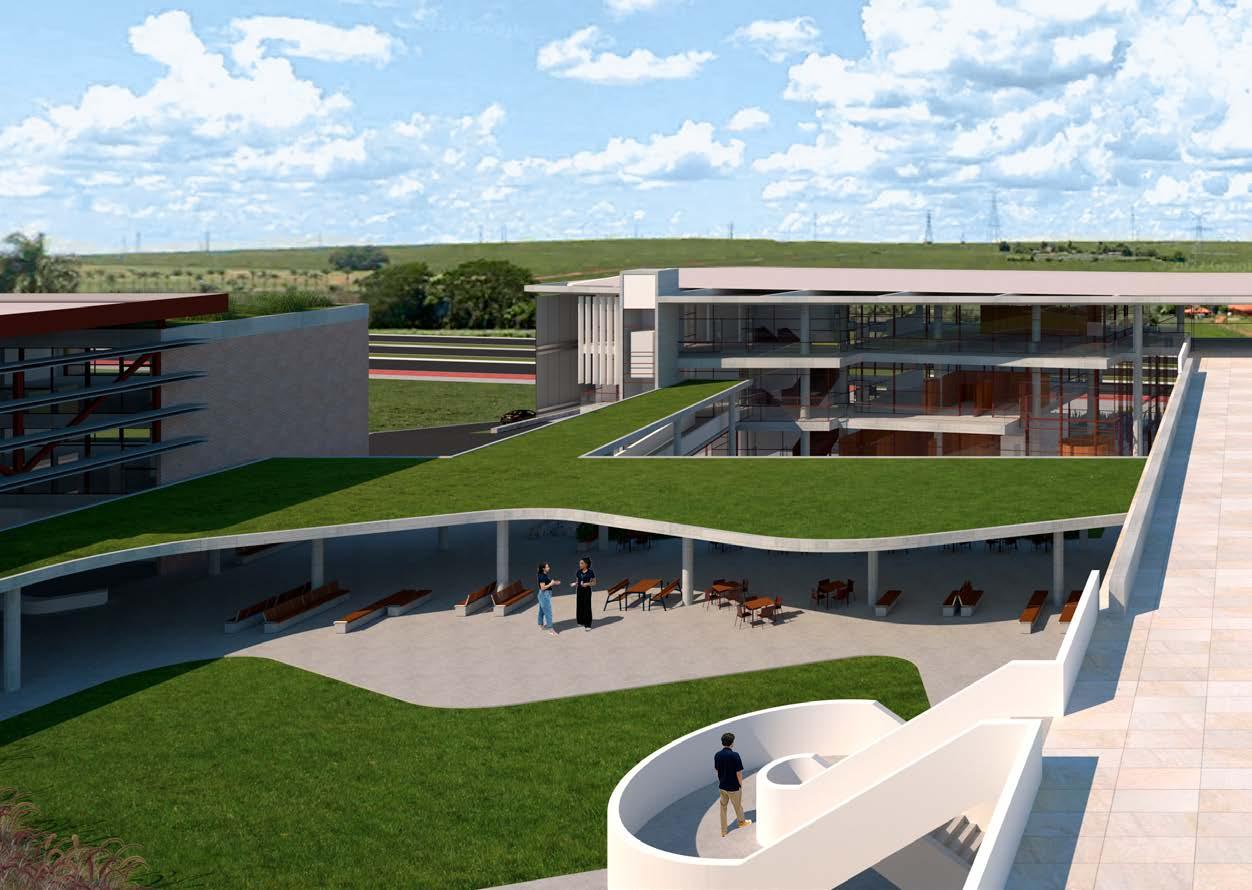 O edifício cuja fachada terá uma extensão com mais de 100 m será com certeza um marco geográfico na principal rodovia que liga Maringá à capital do Paraná. Assinado pelo escritório Verri & Galvão Arquitetos, o