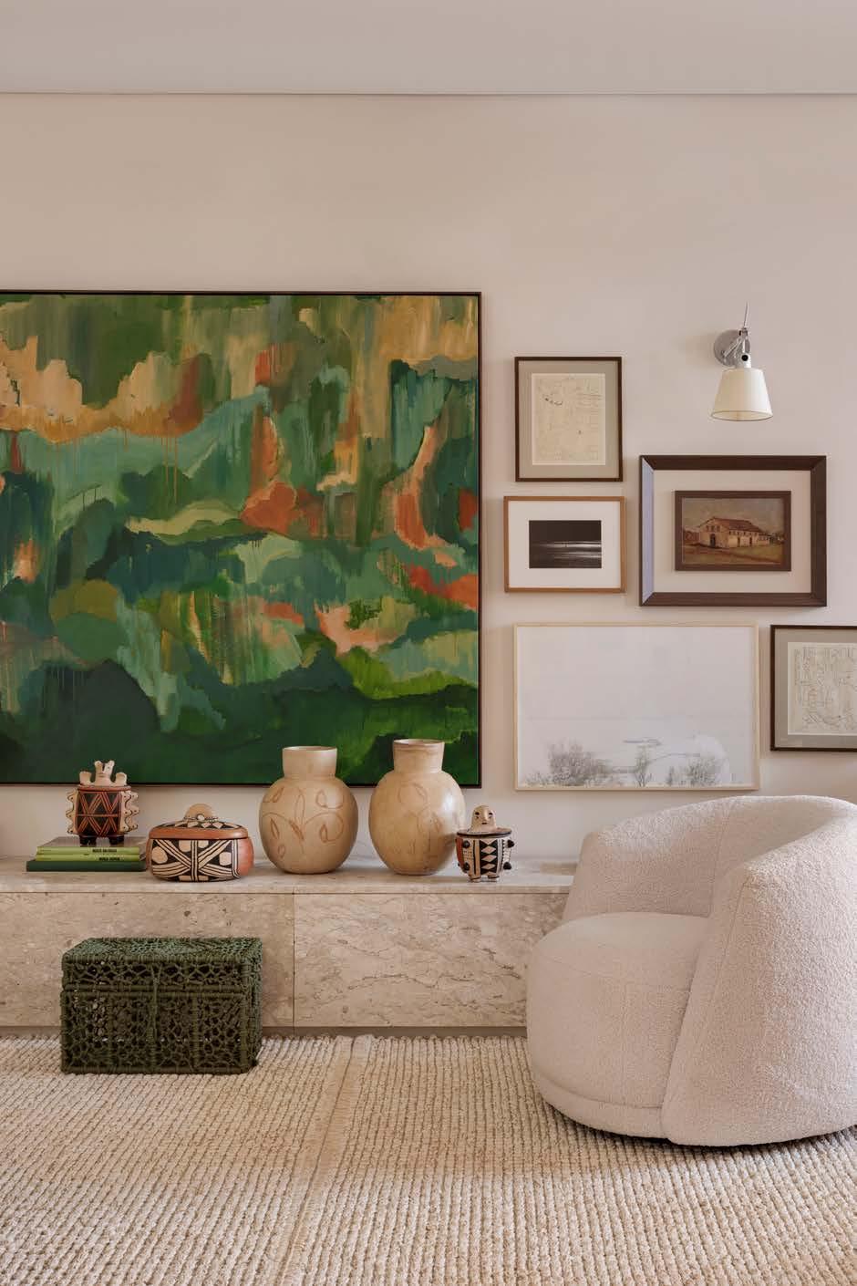 Designer Roger França is the author of this loft whose main characteristic is not having a gender identity, made for a person who knows and admires Brazilian popular art. In the widely integrated and inviting environments, we can find Century furniture with a neutral palette, channeling people’s attention to the works of artists, designers, and artisans from various corners of the country, such as Diego Santos, an artist from Itajaí who develops a wonderful social work; Cida Lima from Pernambuco; Roberto Dias from Fortaleza, and many more. “The idea was to create environments without labels, to praise the underappreciated Brazilian popular art; in this sense, the Century upholstered furniture works as the seats in a gallery, an invitation to comfort and also to contemplation,” concludes Roger.