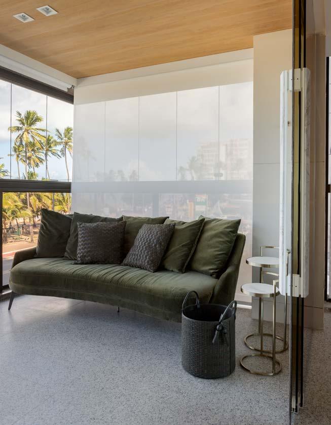 “We have in the apartment a Century covered in magenta velvet, and the balcony, which faces a coconut grove, we put a green sofa and a table top in the same tone, fully integrated with the landscape that, in turn, are integrated with the living and other environments of the apartment, “explains Lais.