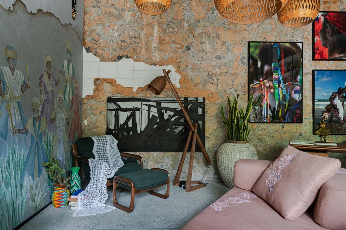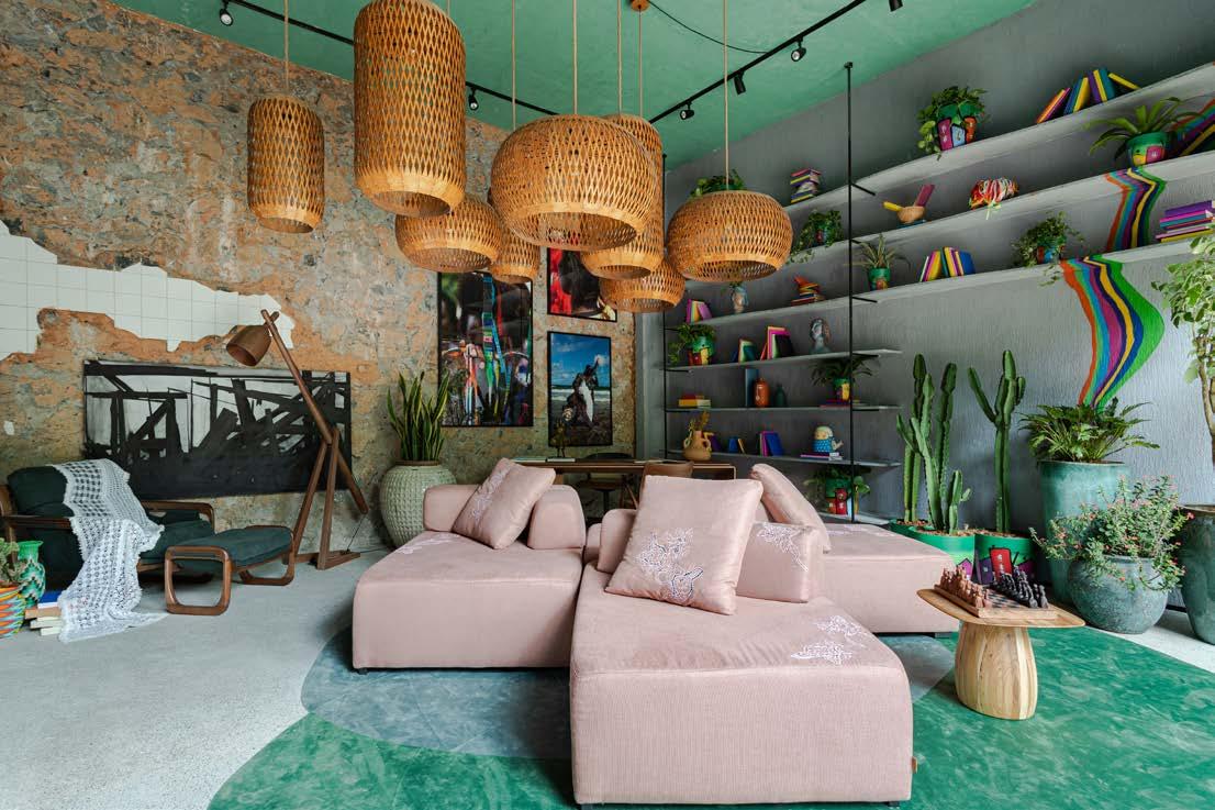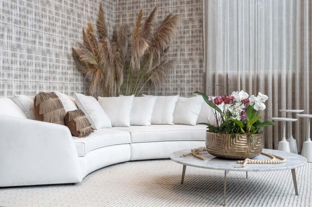 The ease of modulation of the sofa Burgos, with EasyFit comfort technology by Century, allowed the architect Natália Coelho explore, in a poetic way, the environment inspired by the cultural plurality of Bahia, in which the composition in three axes of the sofa represent the three pillars that guided the project: ancestry, religion and the communities of Salvador. Full of color, plants, organic forms and works of art developed by artists from the region, the architect chose to brighten up the environment the richelieu embroidery developed by elderly women accompanied by the NGO Filhos de Bárbara, a wealth of details that express the cultural richness of Bahia, and explore the potential for customization of Century products.