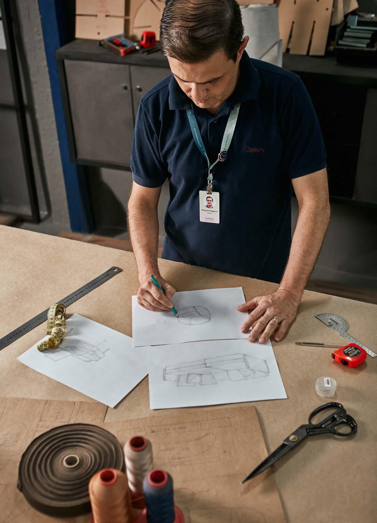 with a background in product design and over 20 years of experience in Italy, about whom you will have the opportunity to learn more deeply on page 56. For Nathalia Samorano, Creative and Marketing Director of Century, the meeting of Simonini translates the very essence of the brand to promote good design with comfort always. “By having an office both in Sao Paulo and in Italy, Simonini arrived ready, with an Italian trace and all the Brazilianness of comfort, practicality and functionality that we seek in all lines.