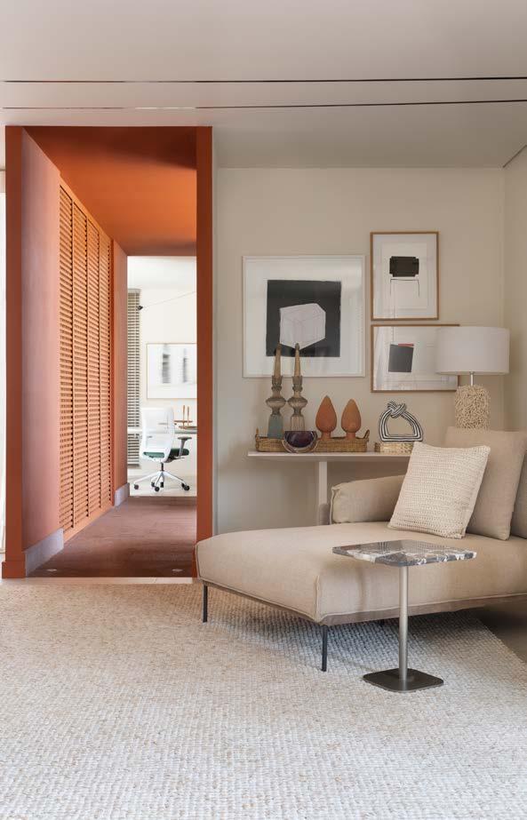 The environment signed by André Henning is designed for a modern, daring, and dynamic family. The fendi color palette and light tones are mixed with orthogonal and symmetrical shapes. To give elegance to the space, the architect chose Century furniture pieces, marked by conceptual designs, classic lines, and light finishes.