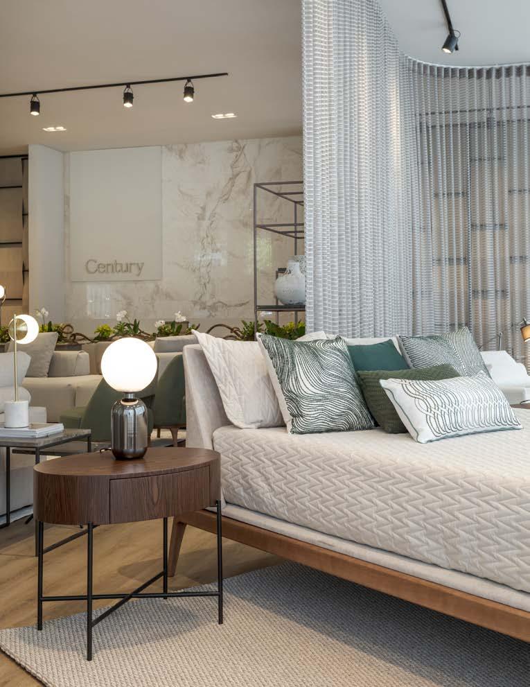 With the expansion of the export department and Century gaining territories increasingly distant from our border, the company took the important step of adding the WGSN platform, a global authority on forecasting consumer trends, to underpin the entire curatorial process developed within Studio Century. “It was the collective work of all more than 50 Studio Century professionals, with exhaustive research and hundreds of hours of testing new technologies that resulted in collections that add design and comfort in a way that only we can do,” explains Nathalia Samorano. In other words, Century Studio is one of the main responsible for carrying out the brand’s purpose of demystifying the premise that comfort and design cannot coexist. “It is not enough to be beautiful and have great visual appeal in the composition of sophisticated environments, it also needs to be comfortable and functional,” says Nathalia.