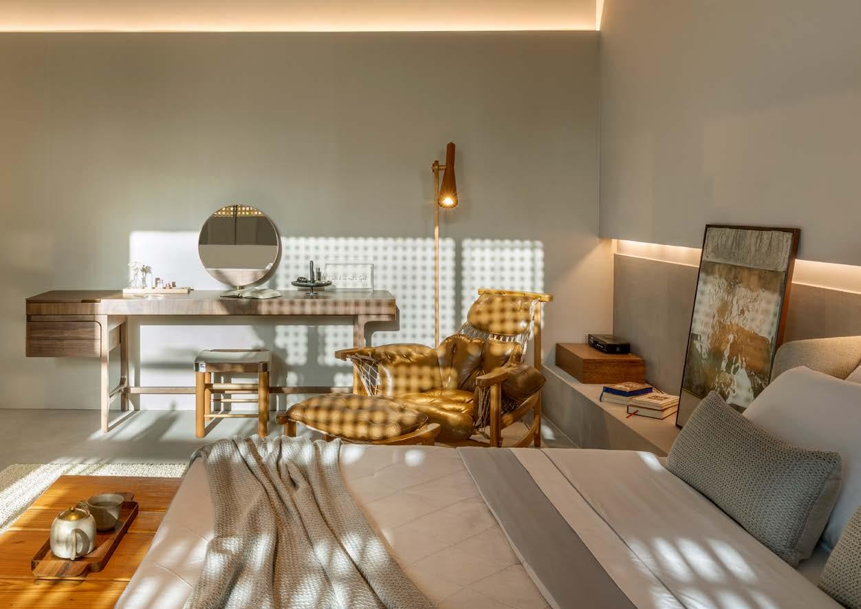 The trio formed by the architect Renata Vieira and the interior designers Laísa Figueiredo and Juliana Velloso designed this 78 m² environment called Casa Etérea, at CasaCor Brasília 2022. As the name suggests, the space preserves in its essence the sobriety and lightness of the light and natural palettes, and the abundance of natural light, giving the whole creation an atmosphere of pure well-being. Elements such as wood and natural fibers gave the touch of comfort and sophistication to a space made to be a sanctuary of relaxation and peace, where the Bed Gorj by Century is the protagonist.