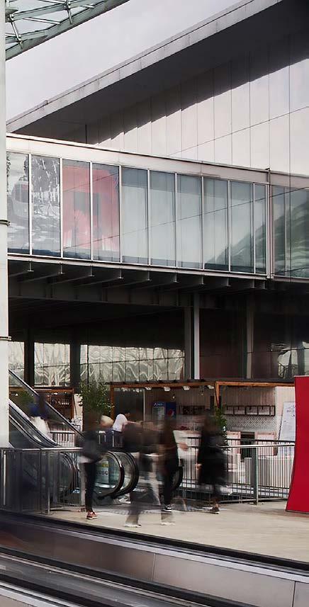 its imposing façade, but for the entire extension of a complex composed of several buildings, each with specific administrative, operational, and industrial functions, all interconnected by footbridges and plateaus at different levels, flooding the entire space with a very present landscaping, outdoor bleachers, and urban furniture that give the space a permanent feeling of connection with the outside.