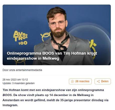 Afgelopen jaar werd Tim Hofman uitgeroepen tot Journalist van het Jaar en ontving zijn programma BOOS de belangrijke journalistieke prijs De Tegel