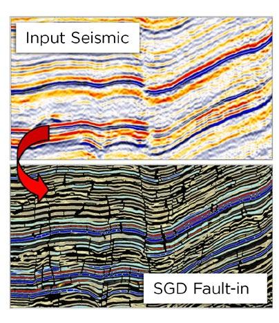 SGD Layering: This is a seismic version to be used for internal reservoir pattern recognition. It might help to support well correlation. The SGD High Frequency is used as an input to a thin layer sparse spark inversion. The result is a pseudo reflectivity that captures subtle internal changes from original seismic traces. Truncations and lateral thickness variation can be better delineated.