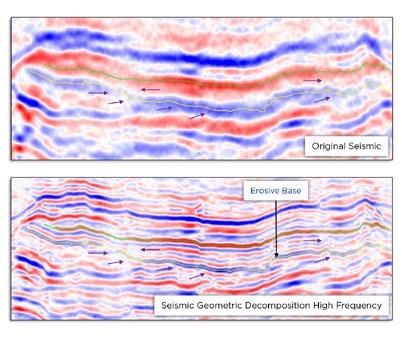 Cayros’ Seismic Geometric Decomposition (SGD) technology reveals internal subtleties that cannot be resolved by legacy seismic. Its proprietary workflows, which can delineate both the geometry and the vertical extension of the reservoirs, will yield new seismic volumes to support, optimize and validate well planning and positioning. More detailed surface interpretation, detailed fault mapping and rock property volumes can be accommodated using this process. Processes can run both in the PostStack and in the Gather domain, and the technology has been proven in more than 150 fields from many basins around the world. It has helped to better understand the lateral and vertical complexities of the reservoirs and to improve both well positioning and production efficiency.