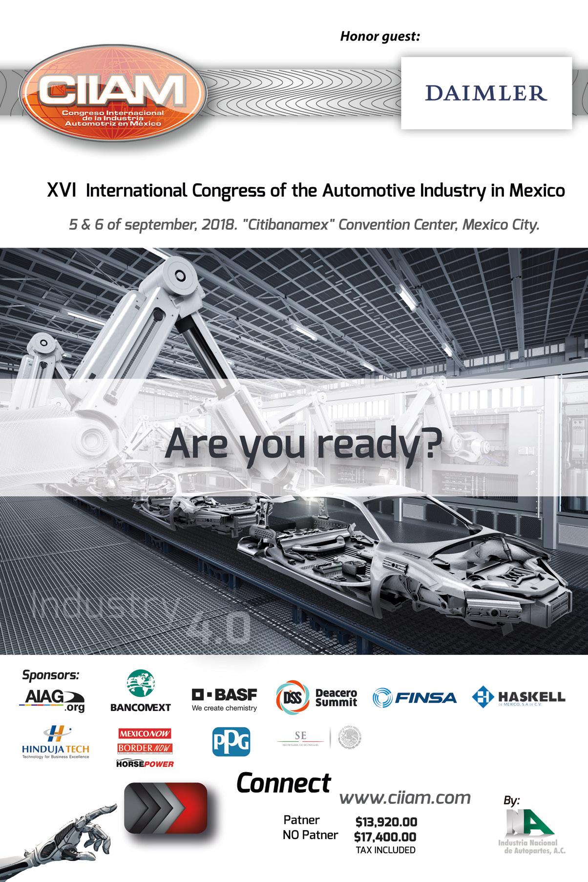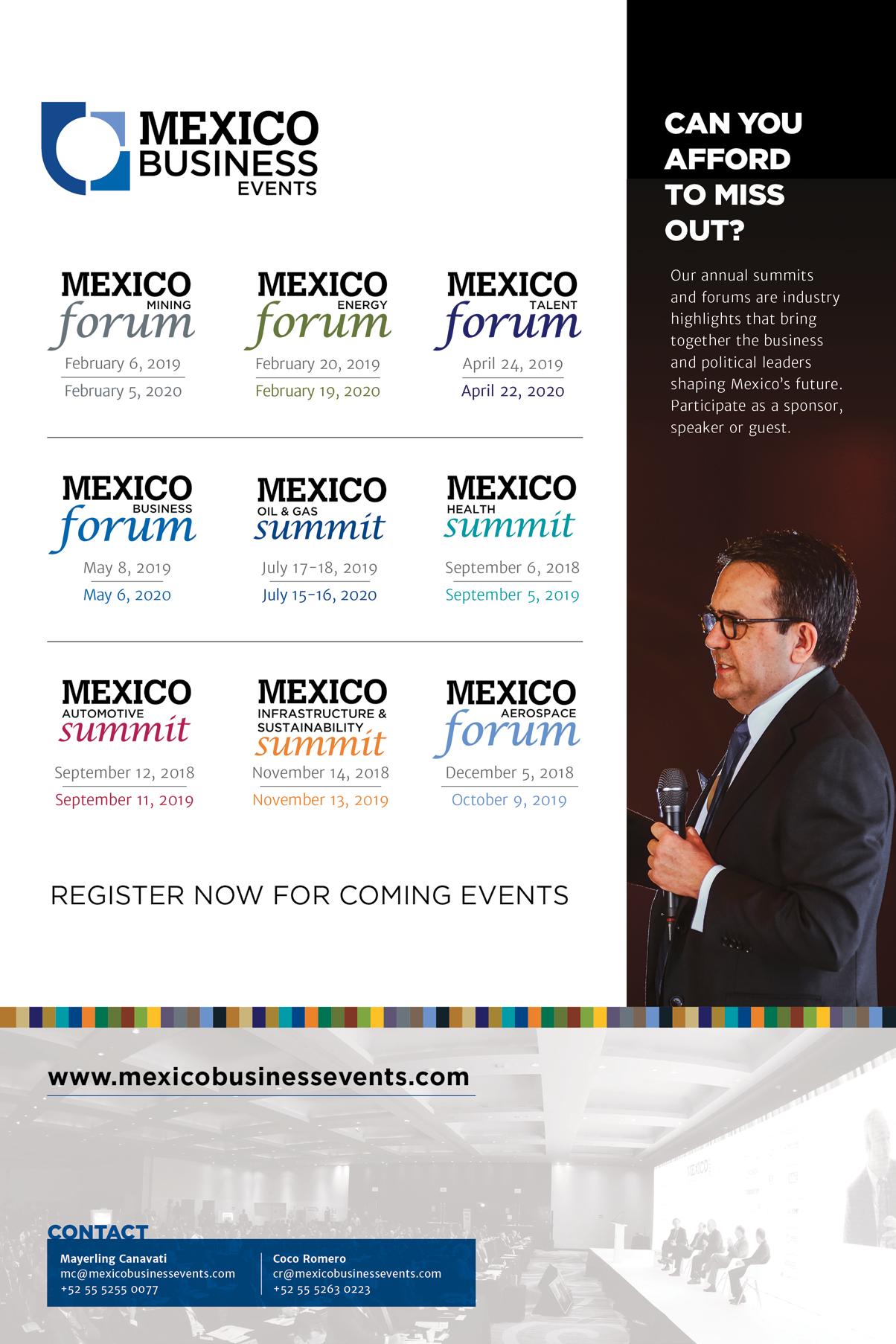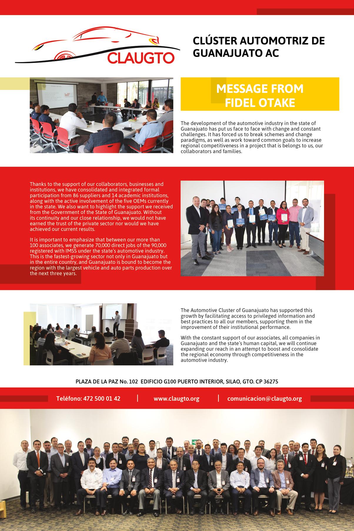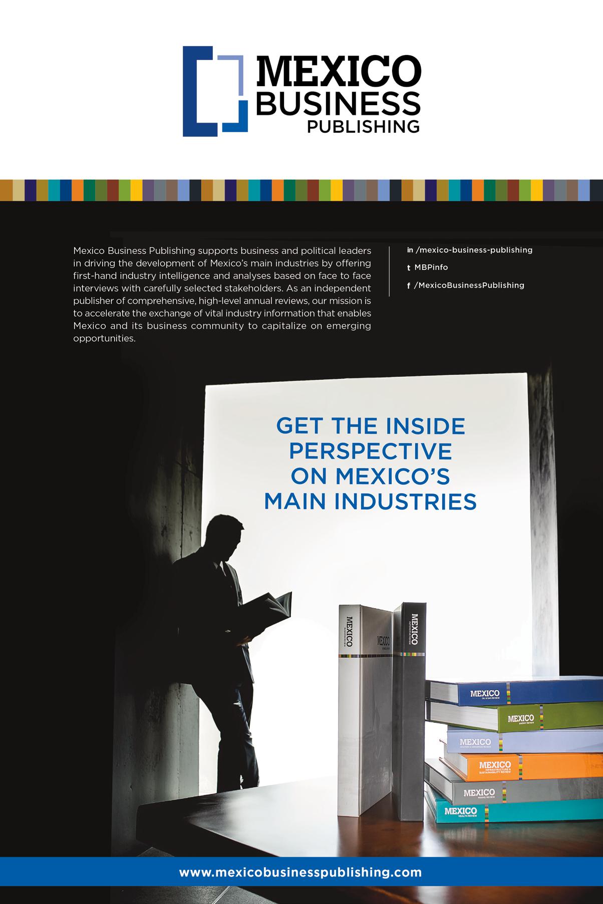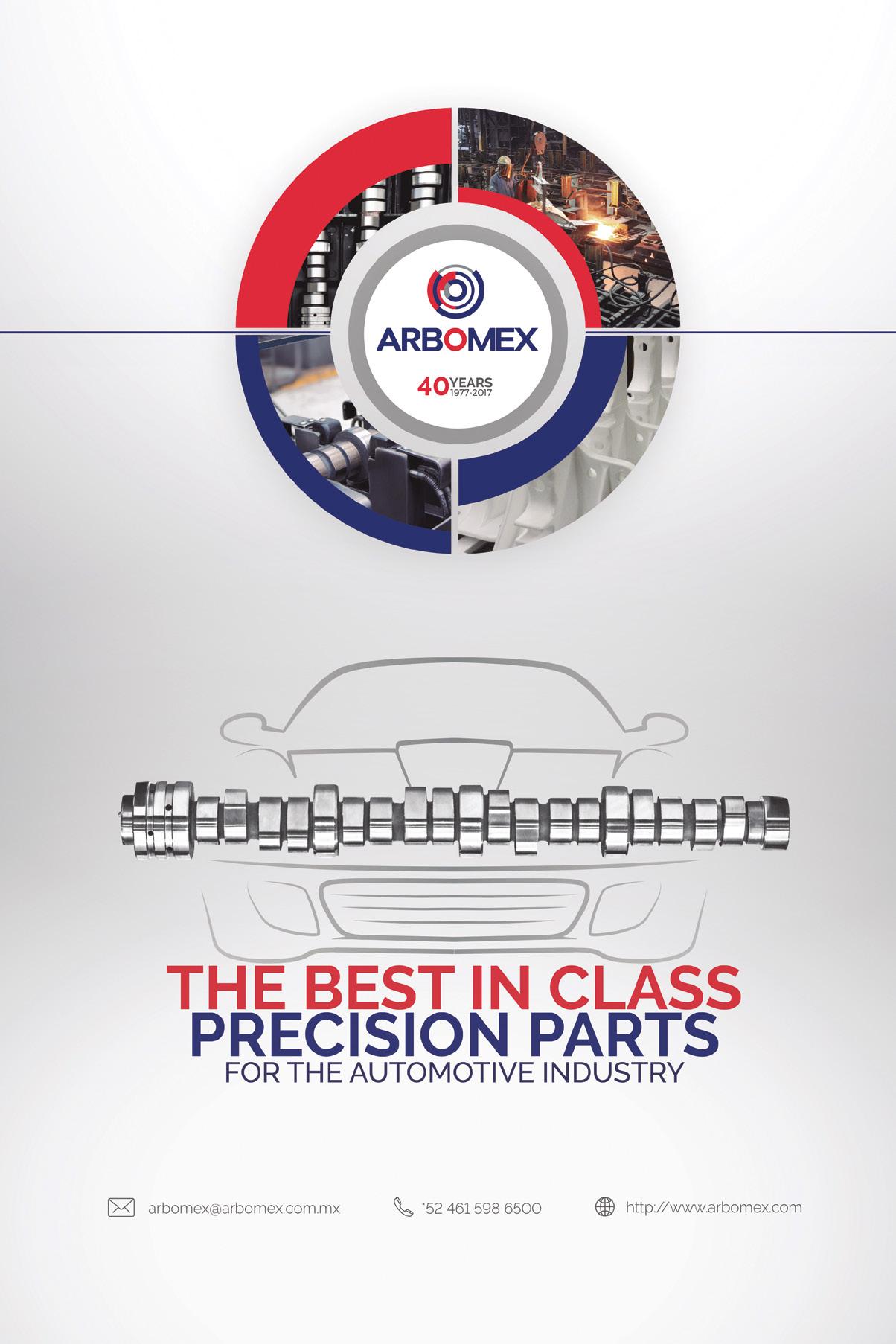 © Mexico Business Publications S.A. de C.V., 2018. This annual publication contains material protected under International, United States and Mexican Laws and international Treaties. Any unauthorized reprint or use of this material is prohibited. No part of this book may be reproduced or transmitted in any form or by any means, electronic or mechanical, including photocopying, recording, or by any information storage and retrieval system without express written permission from Mexico Business Publication S.A. de C.V. Mexico Automotive Review is a registered trademark.