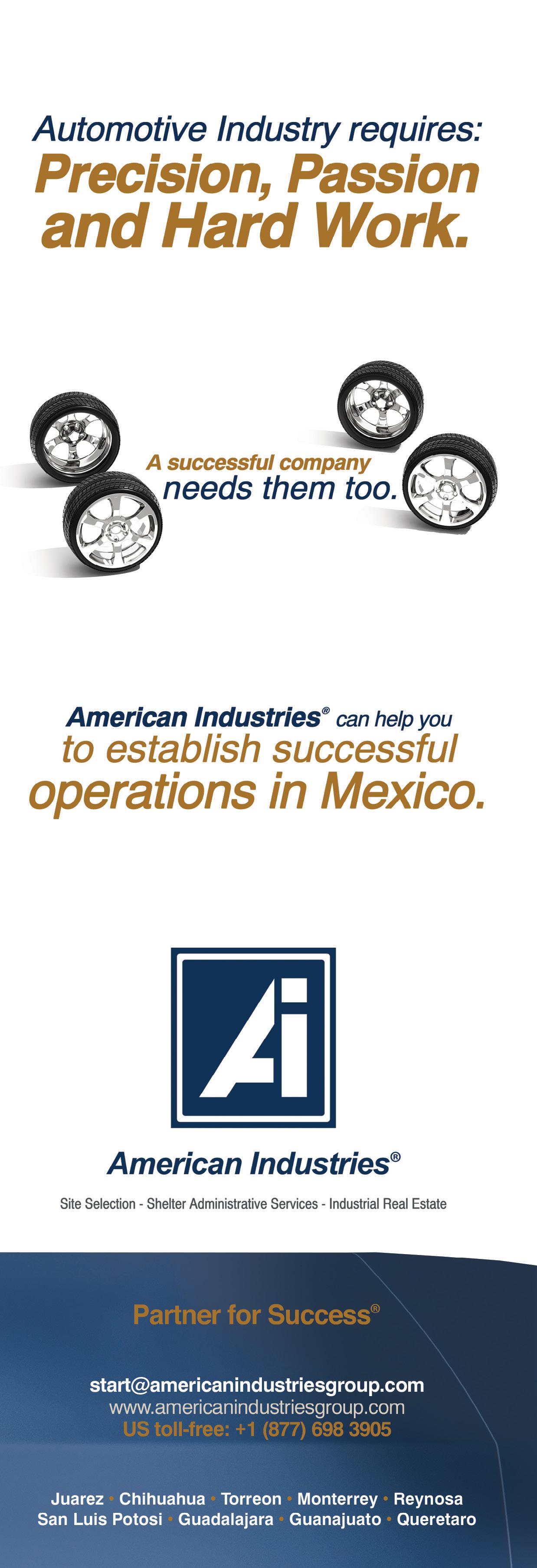 A: American Industries’ mission is to help foreign companies establish operations in Mexico. If a company enters the country on its own, it will have to perform research from day one, making the learning curve longer and painful. It takes time to become familiar with different legal requirements, customs and reforms, such as the new Labor Law Reform that bans outsourcing.