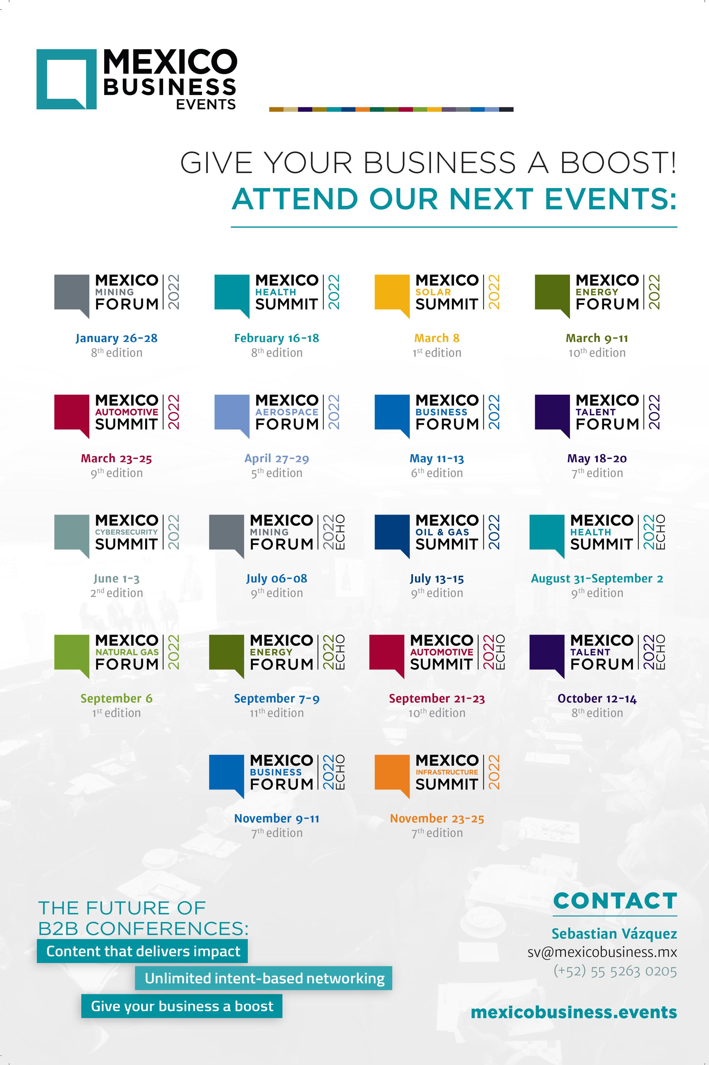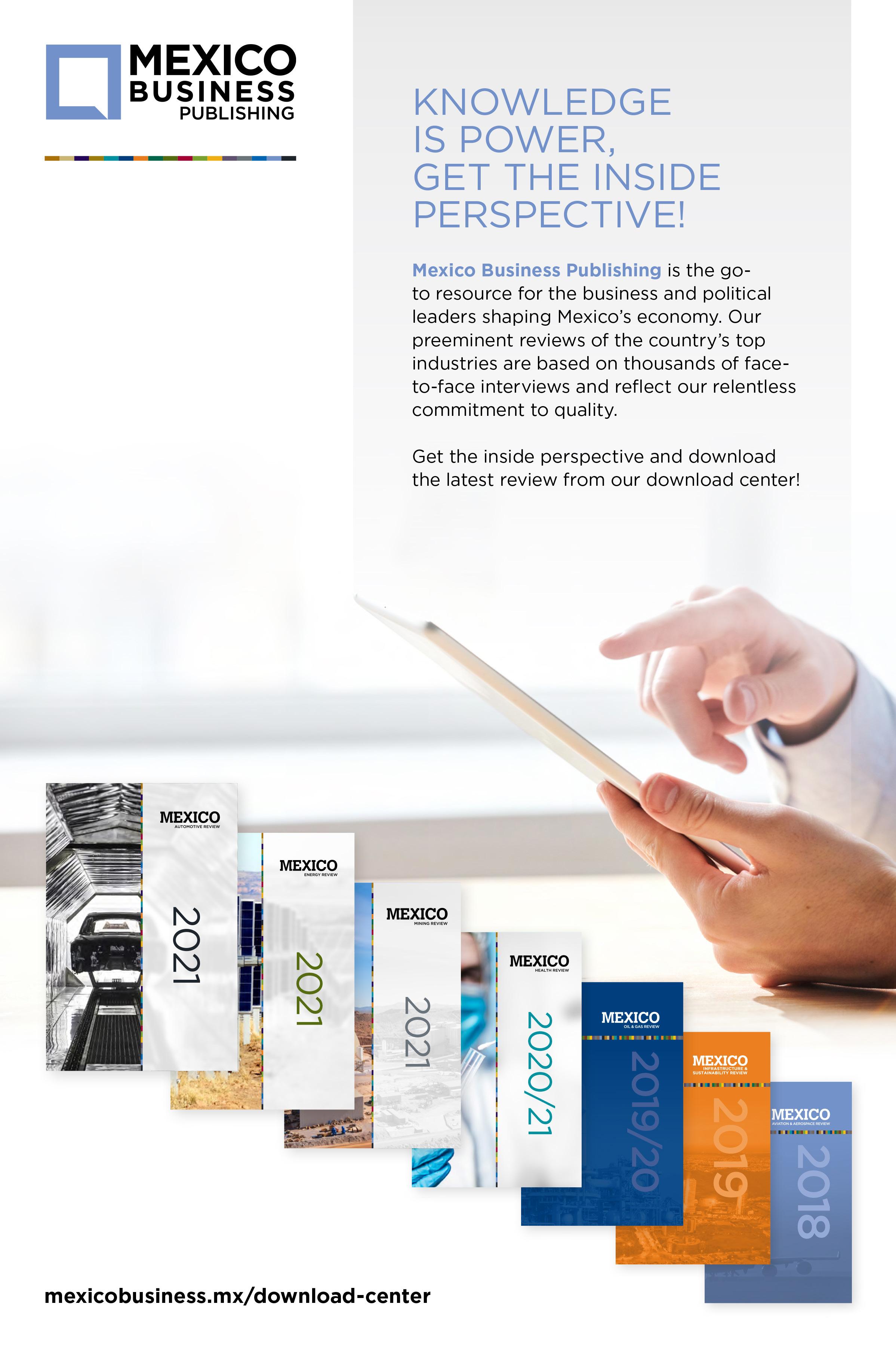 © Mexico Business Publications S.A. de C.V., 2021/22. This annual publication contains material protected under International, US and Mexican Laws, as well as international treaties. Any unauthorized reprint or use of this material is prohibited. No part of this book may be reproduced or transmitted in any form or by any means, electronic or mechanical, including photocopying, recording or by any information storage and retrieval system without express written permission from Mexico Business Publications S.A. de C.V. Mexico Business Review is a registered trademark.