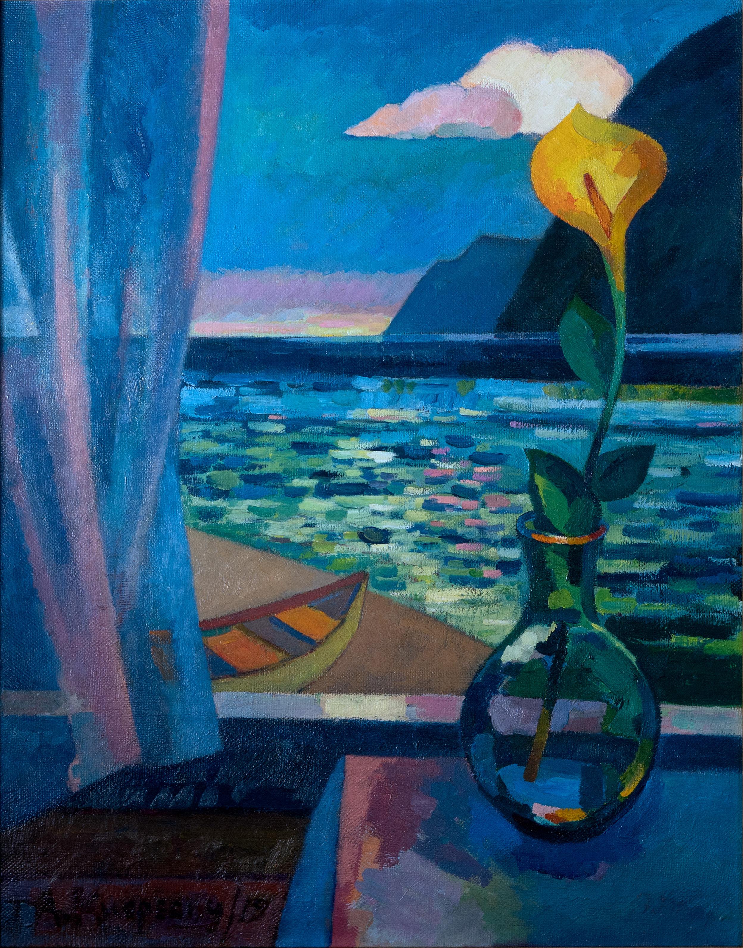 Andrei’s works are in high demand and are in private collections all over the world, including Europe, America, and Russia. Despite the restrictive political ideals of Russia, Kioresku’s individualist approach to landscape paintings is not limited by the borders of where he lives. He continuously finds ways to explore the world’s landscapes without physically leaving Russia and his use of bright, intricate colors on the seams of burlap canvases creates a blend of reality and imagination in his work.