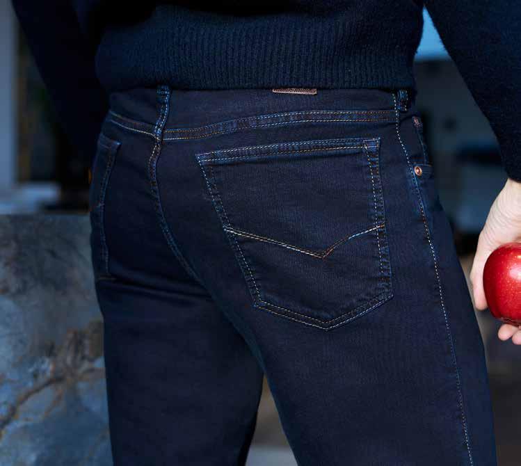 Het wordt dynamische deze winter – met ons casual model Move van M|5 (pagina 4 – 9). Een moderne look gaat perfect samen met optimale bewegingsvrijheid. Onze Five Pocket van high performance satijn (pagina 10) is ook een onmisbare highlight. Ons model Bonn is met een modieuze canvas look in een nieuw jasje gestoken (pagina 21). Onze ACTIVE denim van Cotton TENCEL™ zit heerlijk (pagina 39). Voor koelere dagen raden we onze superzachte thermobroeken van puur biologisch katoen aan (pagina 32 – 33) en onze warme premium corduroy broeken met dynamische flexibele band en in trendy kleuren (pagina 40). Maak je look helemaal compleet met een eersteklas riem (pagina 52 – 53) van het beste leer of sportieve stretchfilamenten!