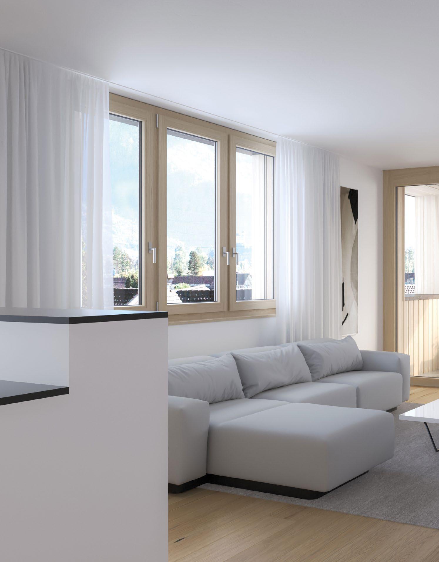 15 Wohlfühlen in lichtdurchfluteten Zimmern mit Eichenparkett und Fussbodenheizung. Entspannt wohnen dank praktischer Details.