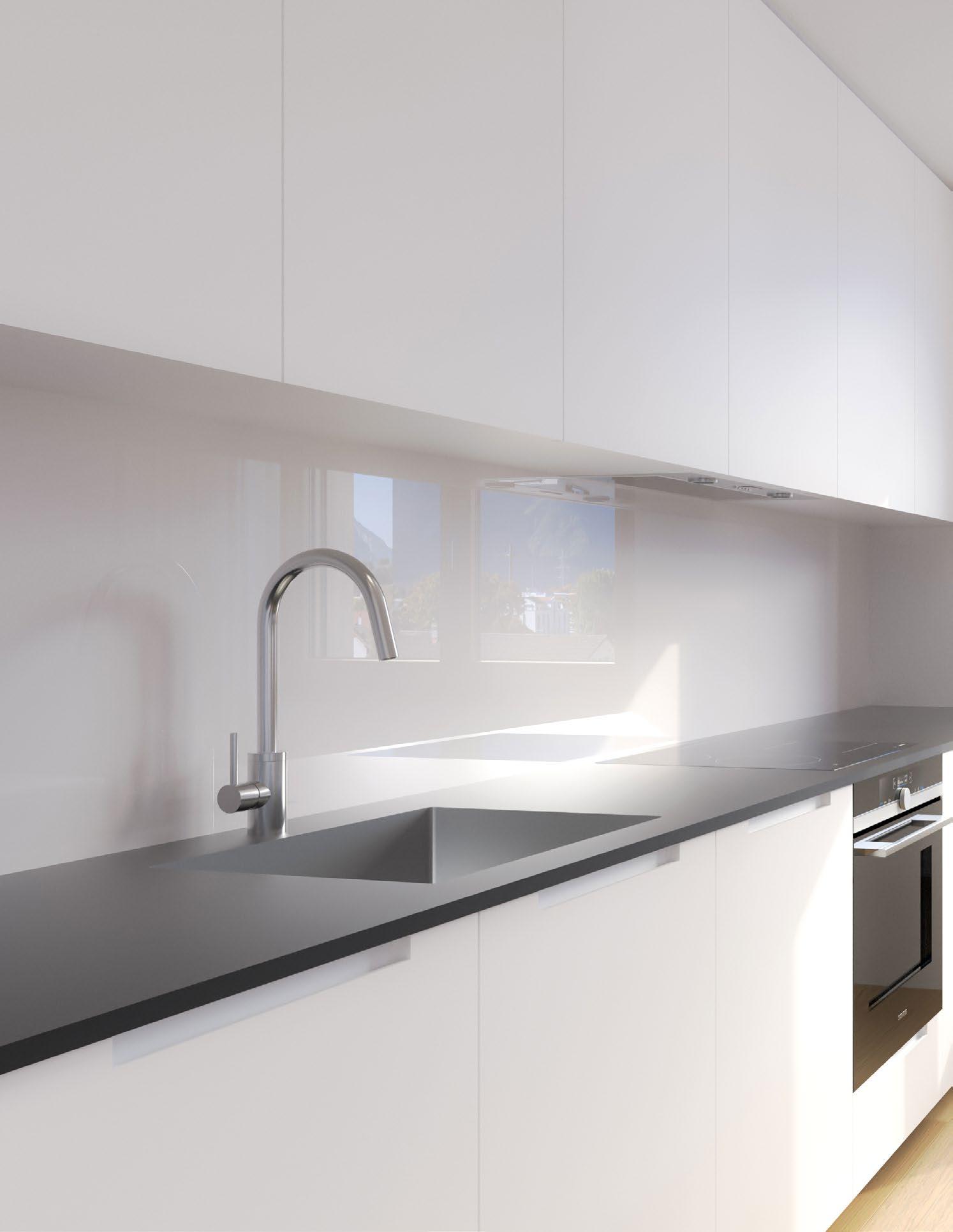 Die moderne Küche mit Naturstein und hochwertigen V-Zug-Geräten sorgt für Genussmomente. Die Sanitärräume überzeugen mit zeitlosem Design. Und viele praktische Details wie Einbauspots, Multimedia-Steckdosen, elektrische Storen, Video-Gegensprechanlage oder Abstellräume machen Ihnen das Leben angenehm.