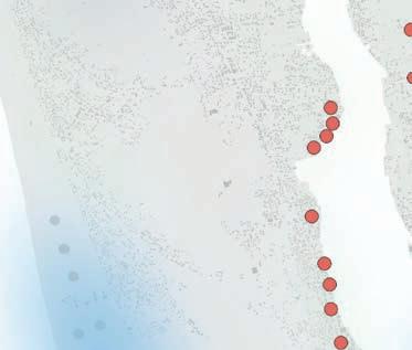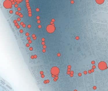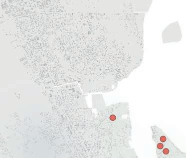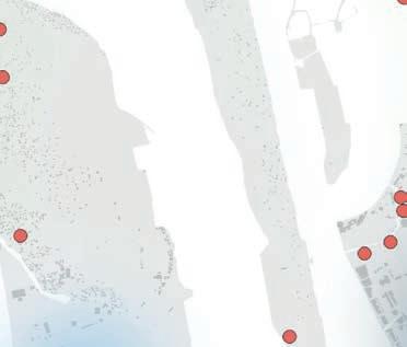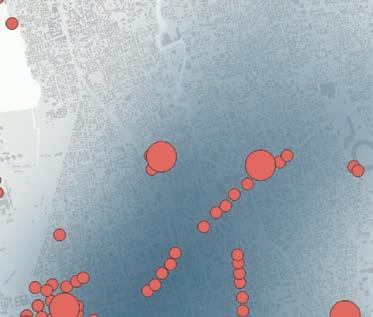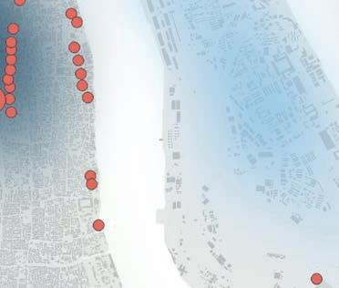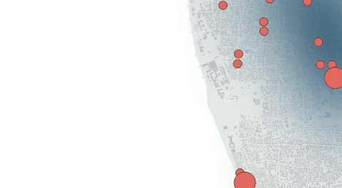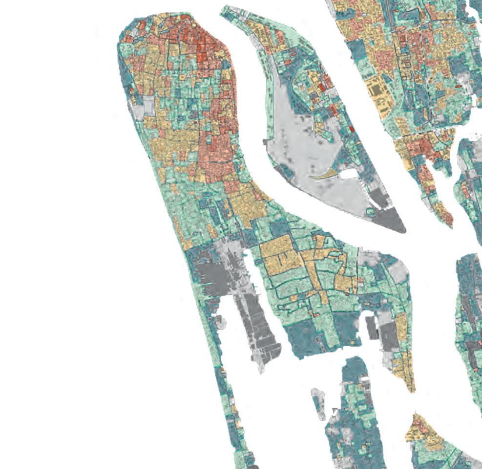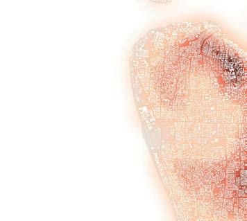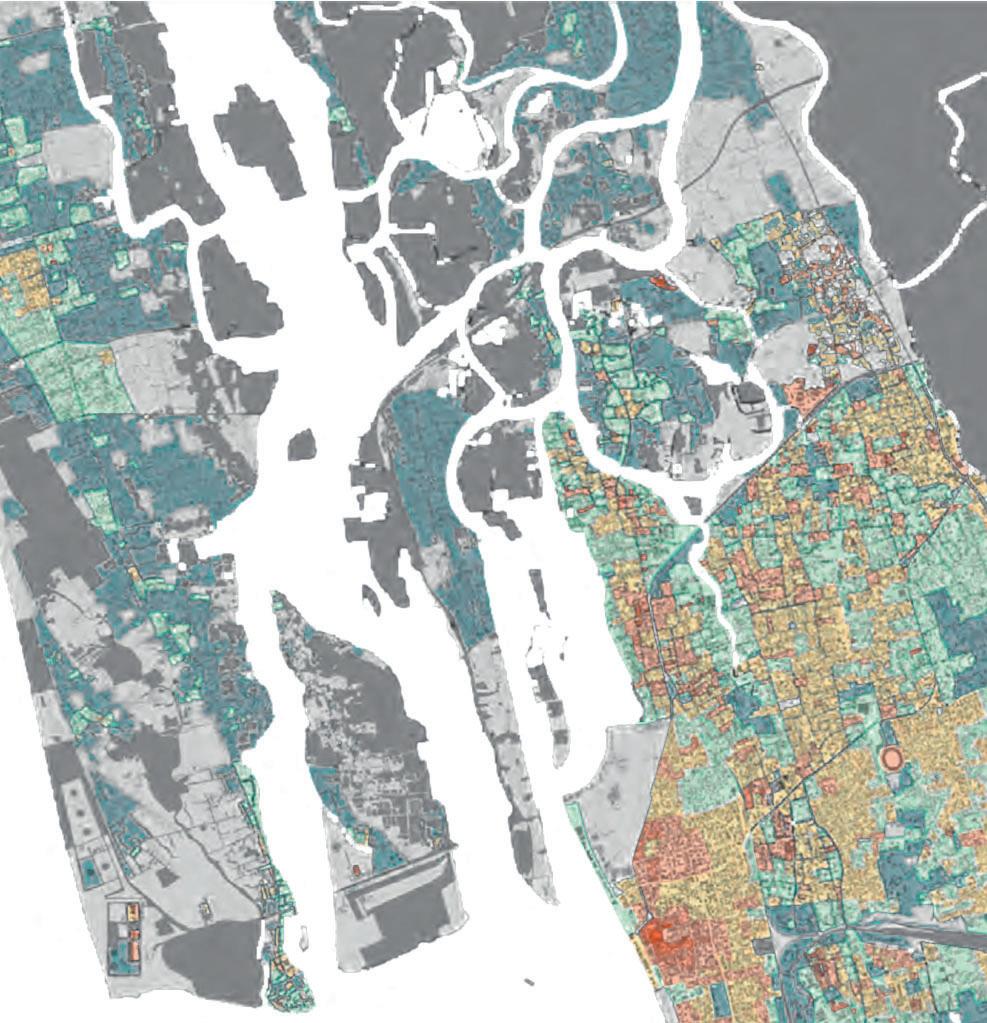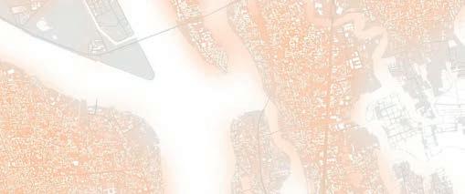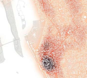 right side shows the building density of Kochi building’s footprint. This method allows for analysis of the maps on the previous two layer of temporality, as due to technological over time larger buildings footprints became Therefore, this map highlights the most recent especially towards East, where the city is analysed separately show the building with a footprint (red outline). This allows to create a differentiation which appear dense due to their fine grids, and appear dense due to their large building footprints. as the ones found in Ernakulam Market, Maradu are more desirable, as they tend to permeability and a more human scale, having great becoming walkable areas.