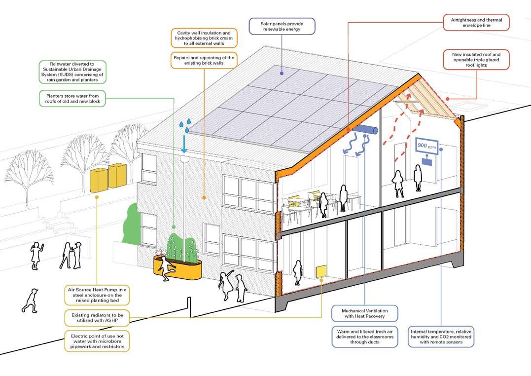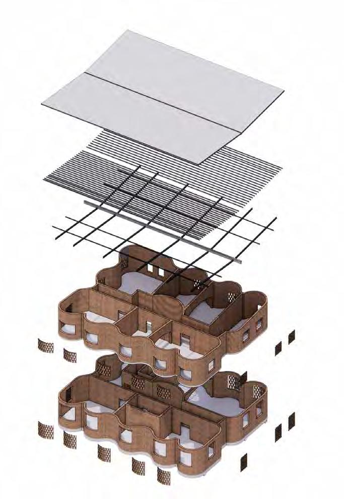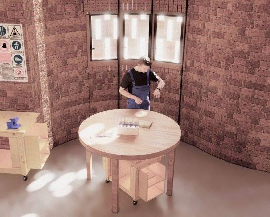 construction diagram of the workshop and training building Ventilation and Lighting Solution - This system is engineered for durability, employing low-tech methods for its opening mechanism and utilizing the building’s fabric to channel light and ventilation into the space.