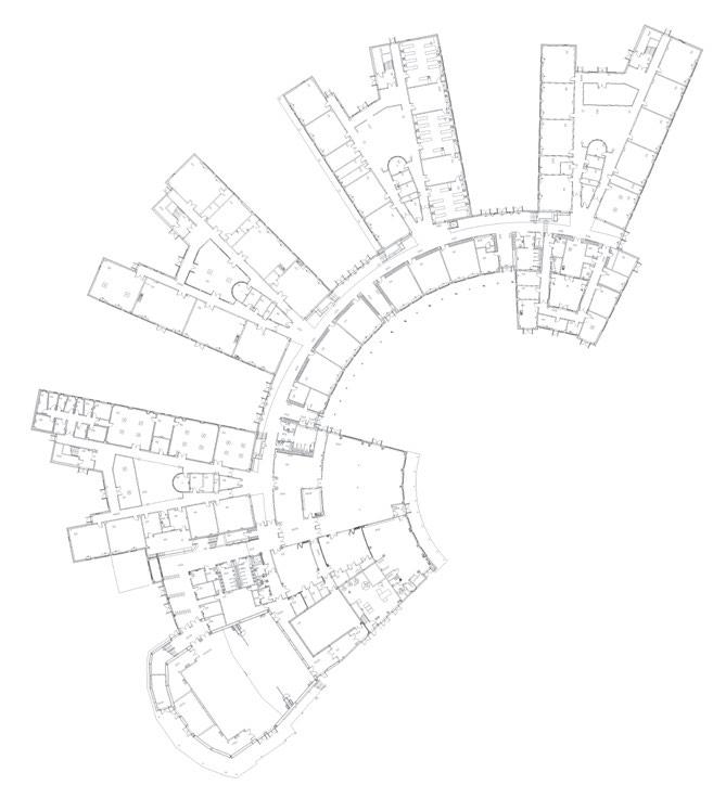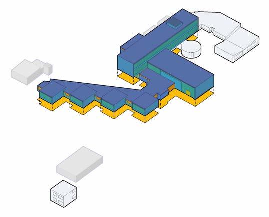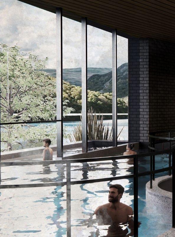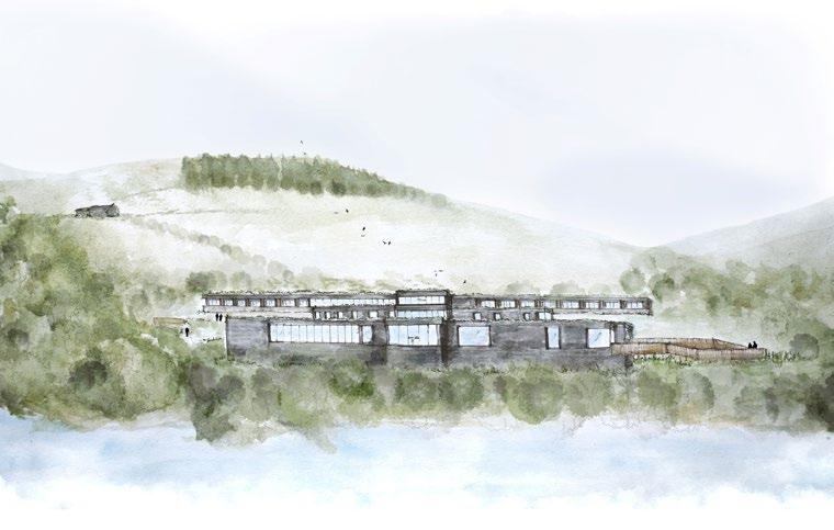 Embedded into the landscape, the centre’s holistic approach works to replenish both people & land through hydrotherapy, peat-land restoration and bio-filtration. This improves the quality of potable water for Powys residents whilst replenishing groundwater aquifers. The centre is spread across four levels, thoughtfully designed to take advantage of the site’s steep topography. The buildings feature a segmented, stepped form that follows the contours of the landscape, promoting harmonious integration with the environment. This design encourages visitors to engage closely with the surrounding natural landscape, enhancing their overall experience.