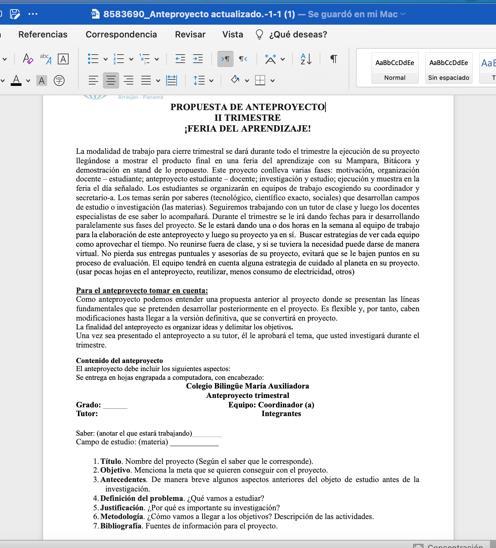 Mandaron el primer documento del anteproyecto,lo revisamos y leímos todos en equipo para empezar a desarrollar el trabajo. Todos estuvimos presentes.