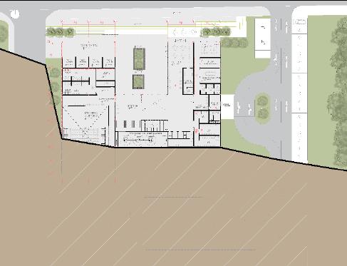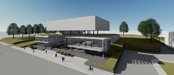 An orthogonal volume is added to prioritize the hall and make it identifiable from the outside for the pedestrian.