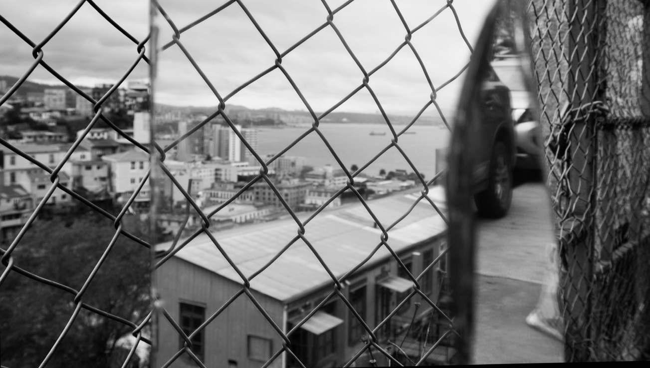 En base a todas las ideas desarrolladas anteriormente hago una serie de fotografías de Valparaíso a través de un espejo roto, revisito muchos espacios, sitúo mi espejo, busco ángulos que generen una distorsión de las formas y tomo mis fotografías desde el espejo mismo. En cada lugar en que me detengo, muevo muchas veces el espejo para captar todos sus ángulos y diferencias geográficas, lumínicas, arquitectónicas, etc. que me brinda el lugar. En este punto inicial es un trabajo más intuitivo que analítico. El espejo roto en el paisaje genera un efecto de extrañeza que es muy propio de Valparaíso, la confluencia de variados objetos extraños en una misma zona conlleva a un paisaje onírico.