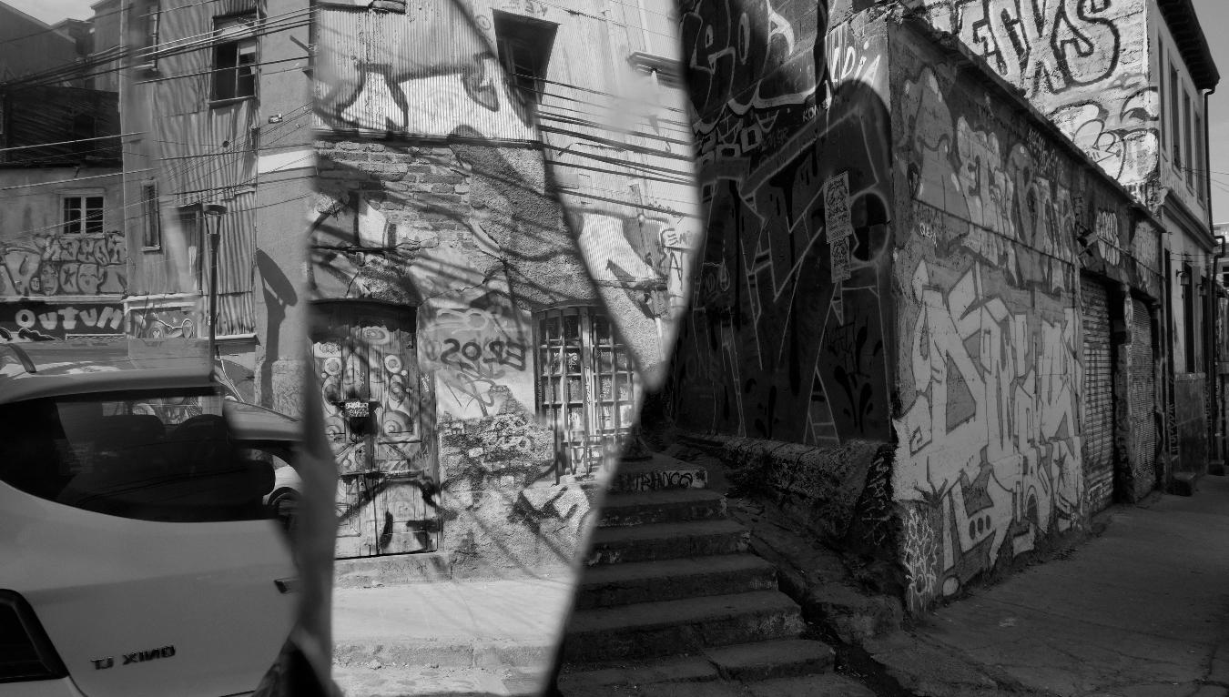 Viviendo la mayor parte de mi vida en Santiago, descubroValparaíso poco a poco en algunas visitas esporádicas. Hace un par de años, en tiempos de pandemia, me instalo a vivir ahí. Recorro sus calles y los edificios parecen querer aplastarme, estos contienen historias insertas en sus paredes de lata y sus grandes puertas y ventanas, el ambiente es lúgubre post estallido social, barricadas delimitan los espacios. Entre cerros, pequeñas diferencias marcan los distintos territorios. Y Valparaíso fluye, es un recorrido. Tengo muchos sueños con esos espacios, y se caracterizan por ser un eterno caminar calles con casas antiguas fragmentadas, extrañas y misteriosas. En relación a esto en el libro Valparaíso Sergio Larraín da cuenta de la particular “geometría” contenida en sus diversos espacios, el carácter fragmentario y la multiplicidad de elemen-