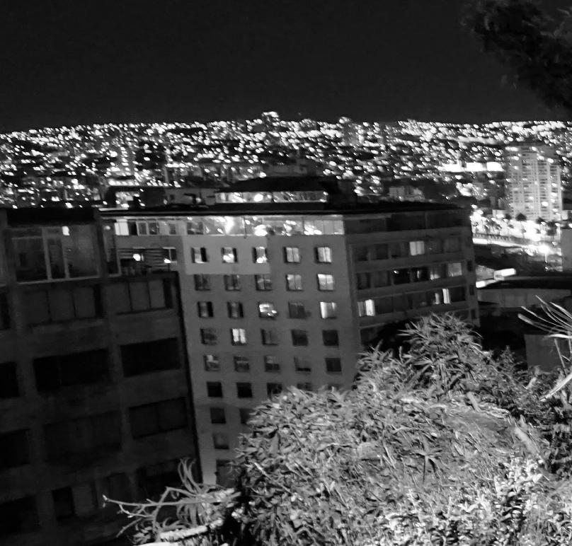 En el año 2020 llego a vivir en Valparaíso y salgo a recorrerlo de día y de noche. Me sorprende el flujo de sensaciones que se produce al desplazarse por él y como las personas que lo habitan acostumbran a seguir ese flujo natural por sus cerros y escaleras. Me asombra además la arquitectura, el material desgastado por los años. En plena pandemia se percibe un Valparaíso solitario mayormente. Tomo fotos con mi celular tratando de capturar esa belleza contenida en el paisaje melancólico.