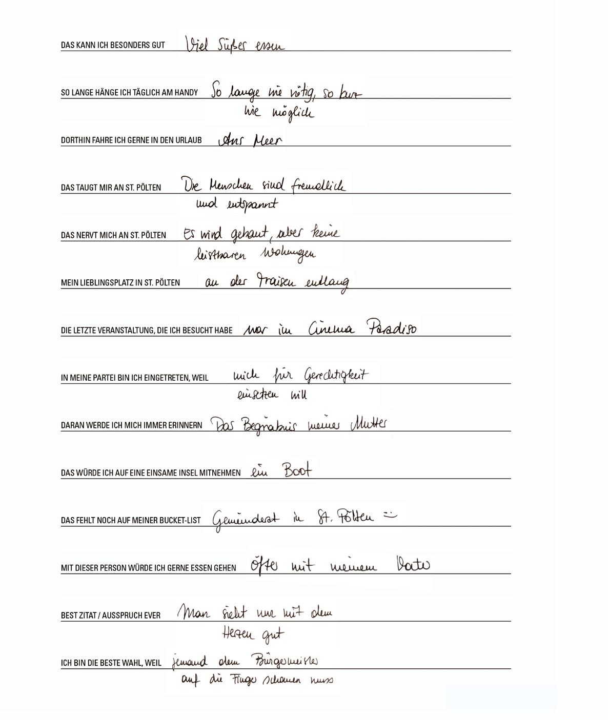 12 Fragebögen & Freundschaftsbücher der Spitzenkandidaten
