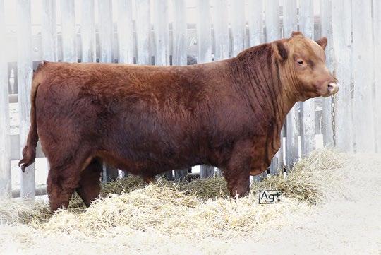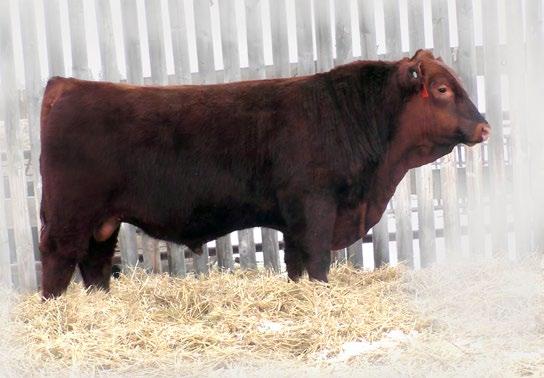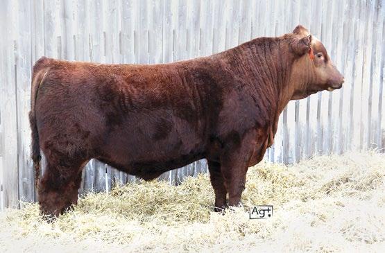 • He has a solid EPD profile that combines calving ease with those important performance numbers. He is packed full of red meat and muscle, travels on a good big foot & big testicled.