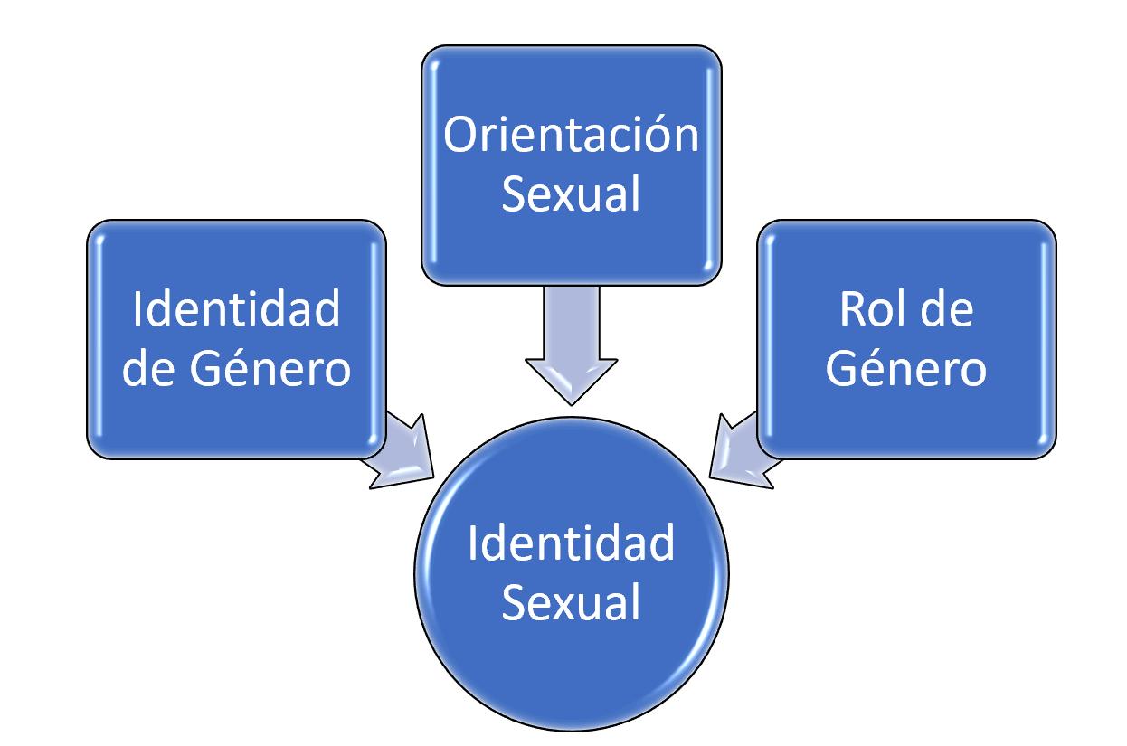 En términos generales, la identidad sexual, también llamada de sexo, alude al aspecto psicológico de la sexualidad de un individuo desde lo corpóreo, es decir, desde la genitalidad, y está conformada por tres elementos: la identidad de género, la orientación sexual y el rol de género.