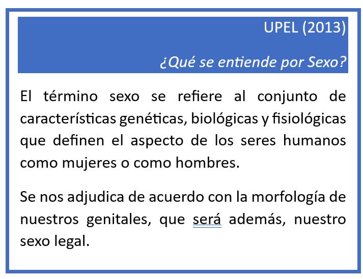 Hablar de sexo implica, en el sentido amplio de la palabra, comprender el comportamiento sexual, por lo que es de suma importancia entender el proceso de diferenciación del sexo con sus tres fases: determinación (proceso por el que se establece el sexo biológico de un individuo, es principalmente genético), diferenciación (proceso por el cual los órganos sexuales y las características sexuales secundarias se desarrollan en función del sexo determinado, está guiado por las hormonas sexuales) y expresión (cómo las características sexuales se manifiestan a lo largo del desarrollo, pero también dependen de factores sociales y culturales) Esta última fase es el estado final del proceso del desarrollo del sexo, que va desde el nacimiento hasta la muerte El entorno sociocultural se encarga de afectar al ser humano cuando lo discrimina como varón o como hembra, niño o niña. Dicho entorno le indicará el aprendizaje progresivo de los comportamientos “de hombre” o “de mujer”, “masculinos” o “femeninos” (estereotipos), que son características de cada país, de cada región y de cada religión. El sexo, en sí mismo, es una condición natural con la que se nace (UPEL, 2013)