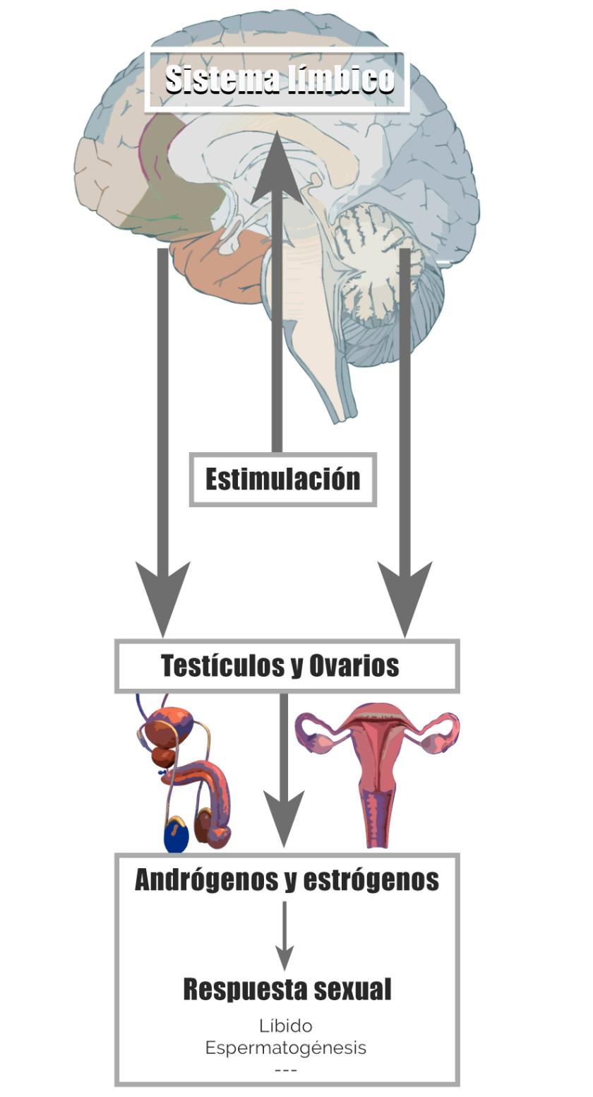 Los estrógenos y andrógenos desempeñan un papel fundamental en la respuesta sexual En mujeres, los estrógenos y los andrógenos parece ser que actúan en conjunto para potenciar la excitación En hombres, pese a que el líbido siempre ha sido asociado con los andrógenos, los estrógenos parecen potenciar el comportamiento psicosexual y mejorar la fertilidad (Pérez, s/f).