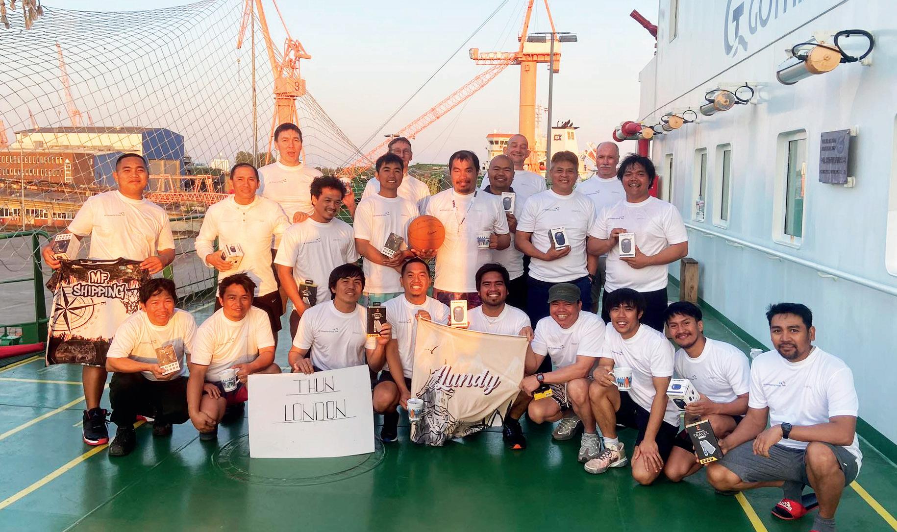 The Thun London’s basketball court was the venue for the games. The crew of the vessels made both teams compete against each other. The games were played with high intensity to defend the honour of the prestigious ships. The game was of a high standard and stamina as the temperatures on deck were still above 25 degrees Celsius and there were prizes to be won. As we are all from Team MFSG, all participating crews wore the same white MF shipping Group sports outfit.