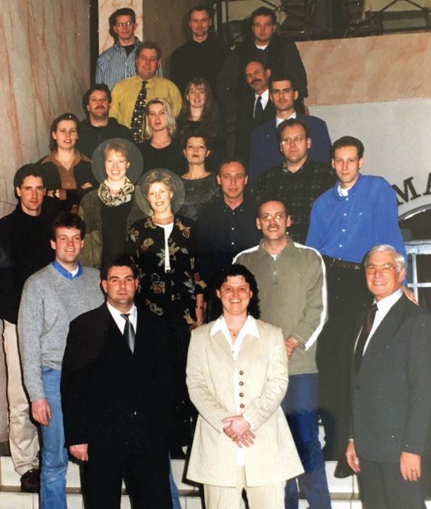 Photo of the office staff in the late 90’s during a company party in Almelo!