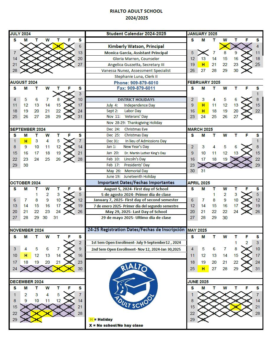 We welcome each of you as you pursue your educational journey here at Rialto Adult School. Congratulations for enrolling in classes to prepare you to achieve your academic, personal, and professional goals! Remember, “the road to success is through commitment.”