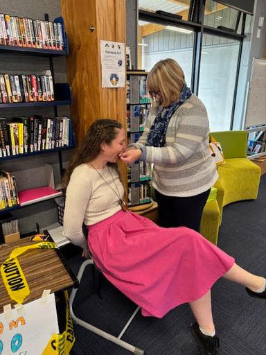 This year library week was held from the 4th-8th 2025. This year the theme was tying up the teachers, every day a different teacher would be tied up during lunchtime and students would have to complete activities to get ransom money to free them.