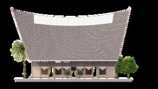 Masing-masing massa bangunan didesain dengan membuat bangunan agar mendapatkan sirukulasi udara yang baik dengan penambahan kisi kayu dan banyak bukaan.
