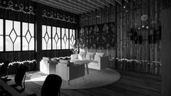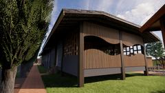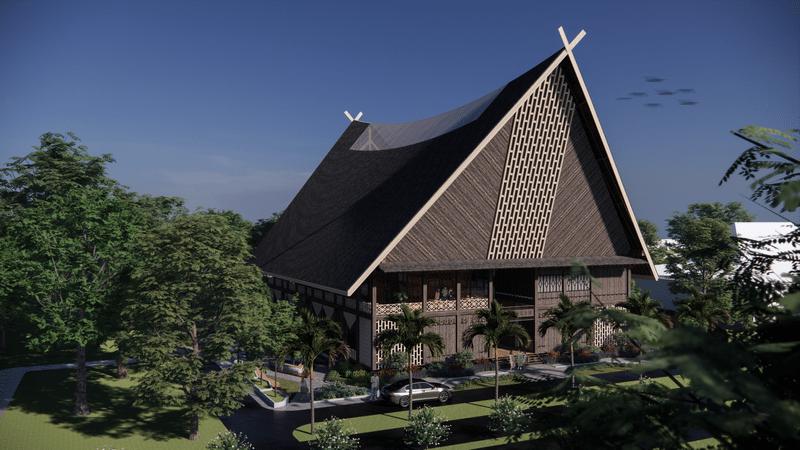 Bangunan ini juga dilengkapi dengan detail arsitektural dan ornamen - ornamen khas rumah tradisional limas dan baghi