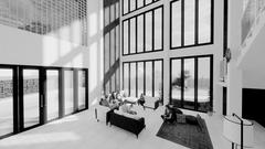 Dengan konsep hemat energi dan sustainable bentuk ruang dibuat dengan semi outdoor dan pada atap bangunan diberikannya skylight.