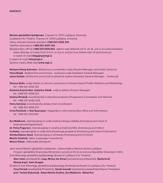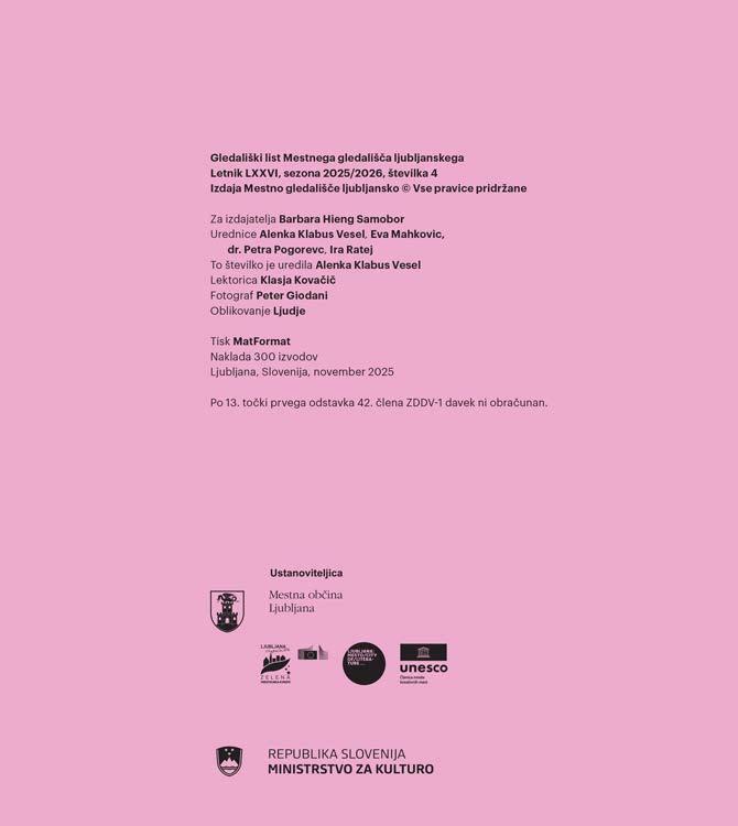 Priloga gledališkega lista Mestnega gledališča ljubljanskega Letnik LXXVI, sezona 2025/2026, številka 4