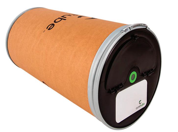 The CureTube is a simple, straightforward curing solution for cultivators seeking an alternative to mason jars without ditching the traditional burning process. The container features a growerfriendly lid with a burp door to ease access to the flower, a built-in hydrometer with an external display, slots for humidity or oxygen packs, and a whiteboard for notes during the curing process. The twenty-four-gallon tube can cure up to ten pounds of flower in fourteen days.