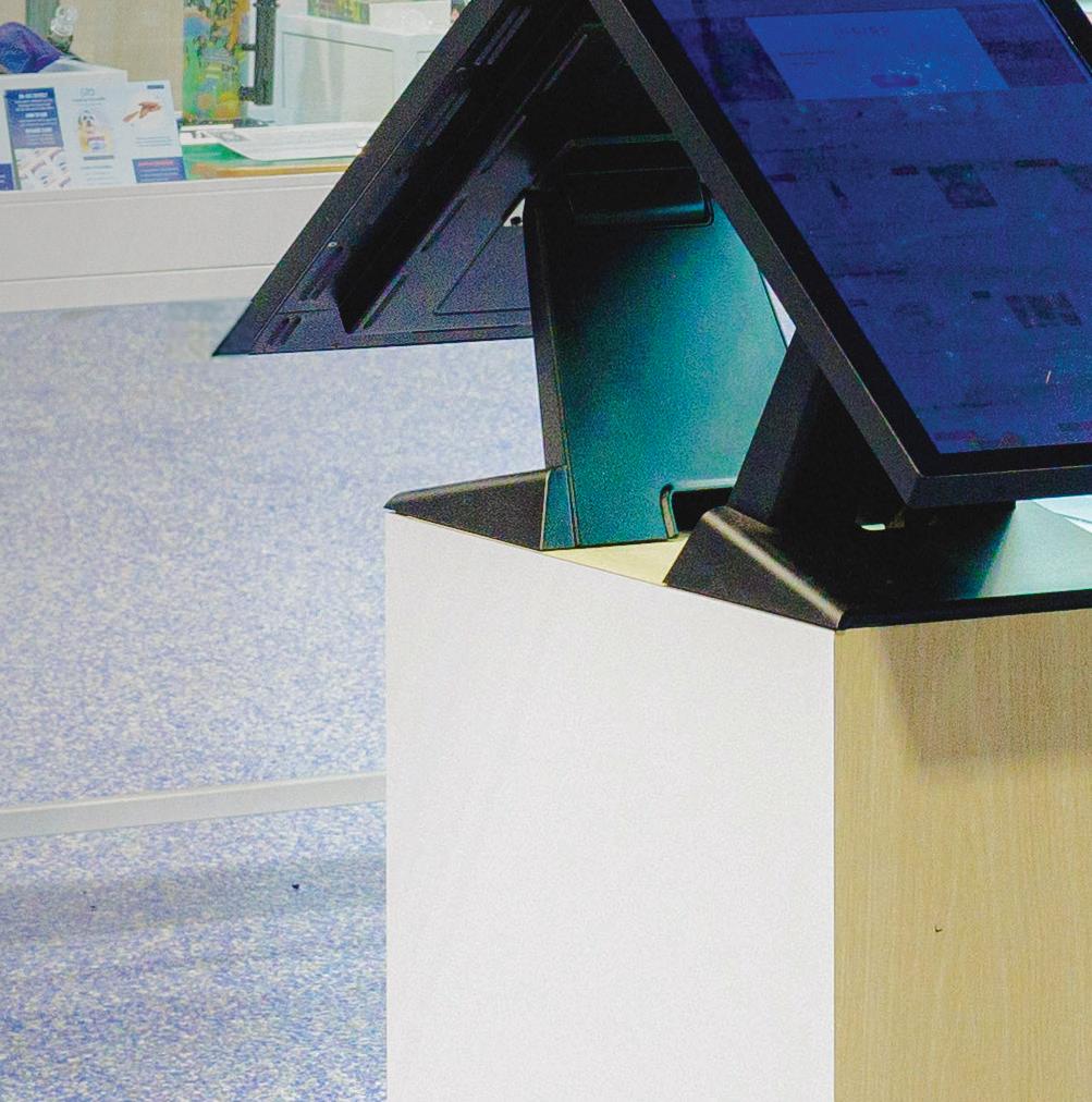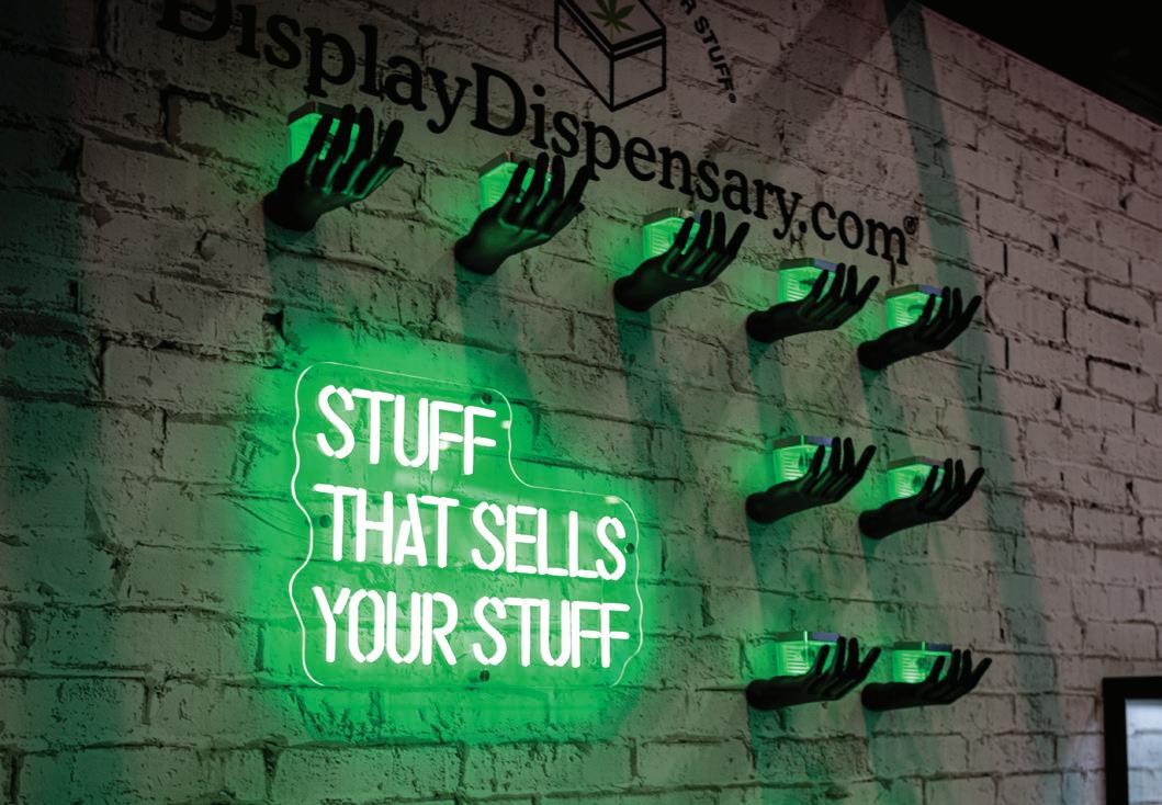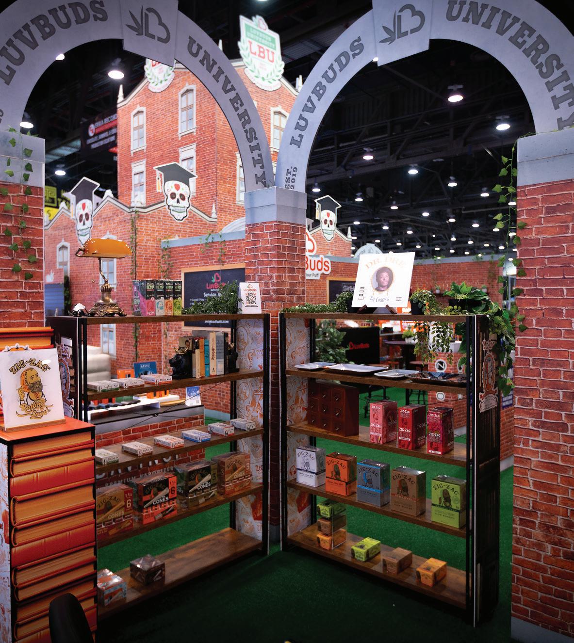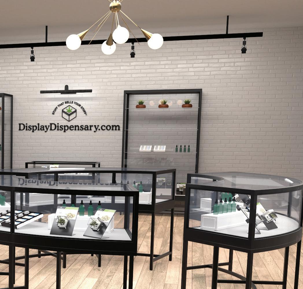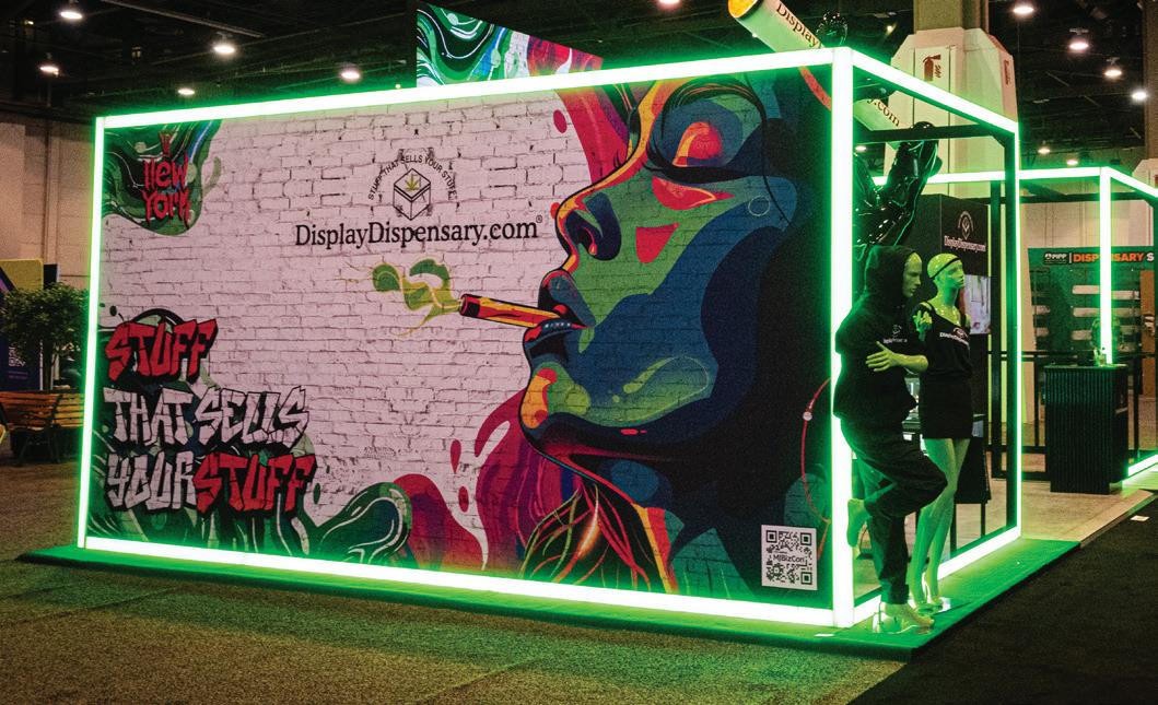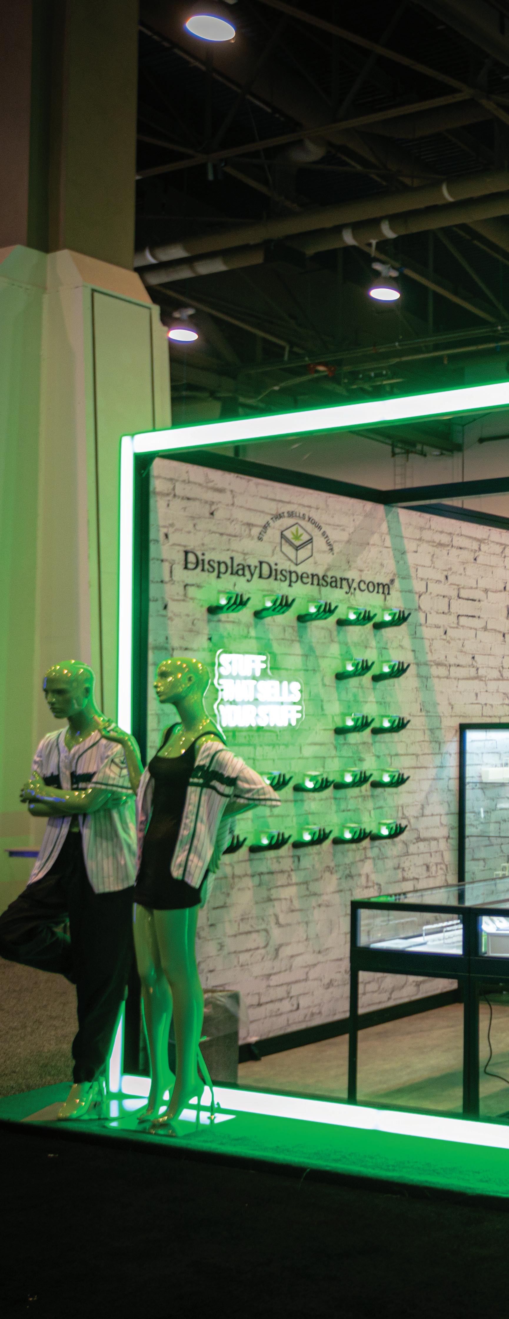 LEFT: Maximizing the glass surfaces in Dispensary123 floor display cases offers customers a 360-degree view of the products inside. ABOVE: Colorfully labeled FlowerBox