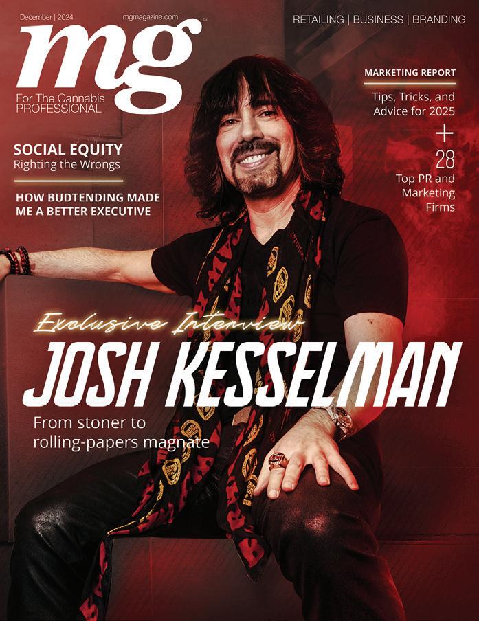 mg Magazine: For The Cannabis Professional Vol.11, No.4 (ISSN 2379-1659) is published monthly by Incunabulum LLC, located at 23055 Sherman Way, No. 5069, West Hills CA 91308. Periodicals Postage Paid at Las Vegas Post O ce and additional mailing locations. POSTMASTER: Send all UAA to CFS. NON-POSTAL AND MILITARY FACILITIES: Send address corrections to mg Magazine, 23055 Sherman Way, No. 5069, West Hills CA 91308.