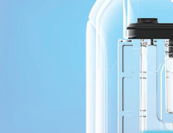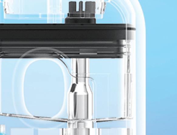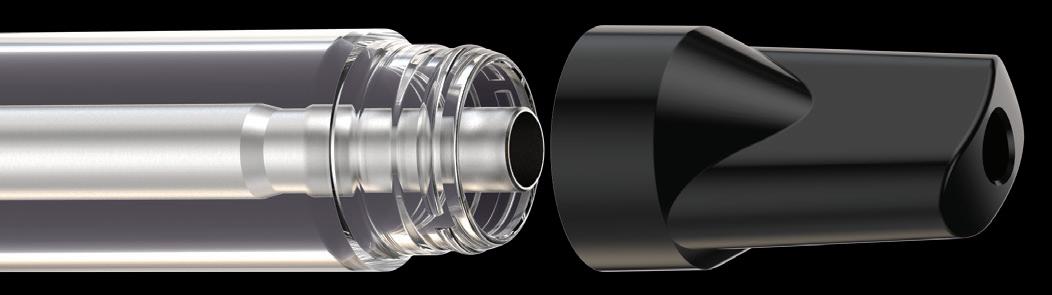pens to a pod format that allows users to change flavors and oils on the move without changing batteries. The Traveler Extreme features a fully transparent design with all-glass components—tank, center post, and mouthpiece—in halfmilliliter and one-milliliter capacities. Neither the pods nor the AIO need a cotton barrier between the oil and heating elements, leaving glass and ceramic as the only points of contact for vaping liquid. Shoched said the glass components slow oxidation, which contributes to the degradation of extracts over time. Consumers usually notice oxidation as altered flavor. Because O2VAPE’s glass components minimize oxidation, they also may extend products’ shelf life.