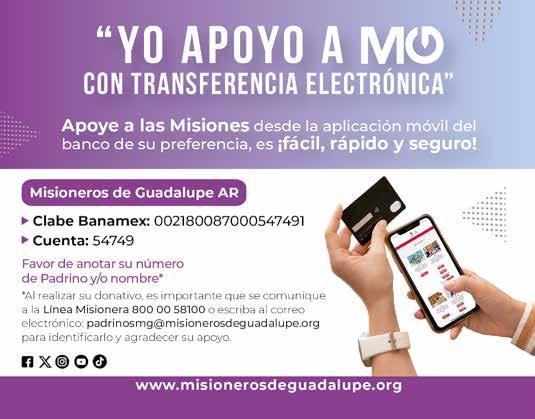 Misioneros de Guadalupe AR CLABE BANAMEX 002180087000547491, Cuenta 54749