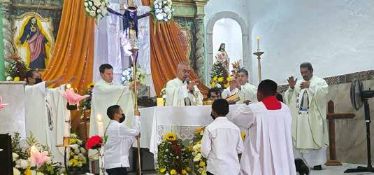 El Caribe, en la mayor de las Antillas, con raíces del mismo árbol y raigambre de cruce de culturas y formas de manifestar la fe, pero con la misma hambre y sed del Señor. Isla soñadora y atrevida, distraída en lo íntimo de su moral, con su mirada atenta en el horizonte y en la profundidad del cielo, buscando día y noche el sueño alcanzado por Juan Salvador Gaviota: volar, volar hasta el infinito, arrancando la pesada cruz que se lo ha venido impidiendo desde aquel día. Siempre sedienta del Dios vivo y buscado en la Eucaristía, celebración que une y transforma: “…Madre, del pobre y del que sufre, Madre de alegría y dolor: todos tus hijos a ti clamamos, ¡Virgen Mambisa, que seamos hermanos!, ¡dale la unidad a tu pueblo, siembra amorosa la unión!... ¡Madre, que el amor a mi tierra nazca del amor a mi Dios!” Y el mg, acompañando con sencillez al pueblo de Dios, convoca, evoca, provoca y sale de nuevo con él: “No tengan miedo, soy Yo”, “estaré con ustedes todos los días”.