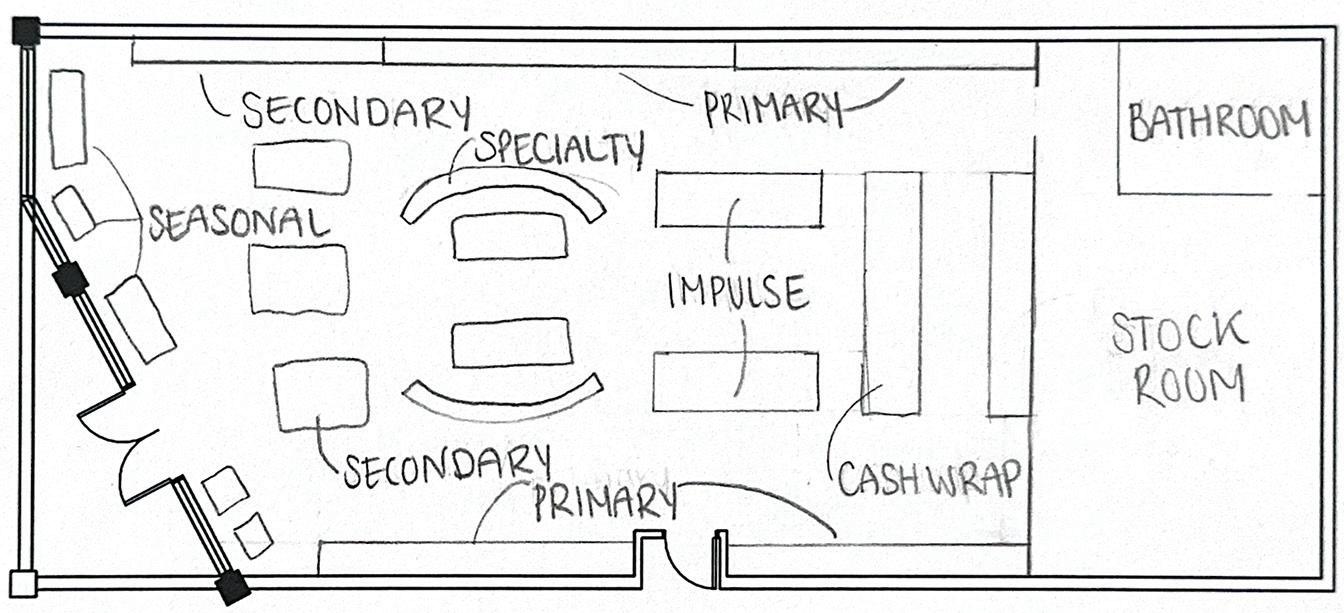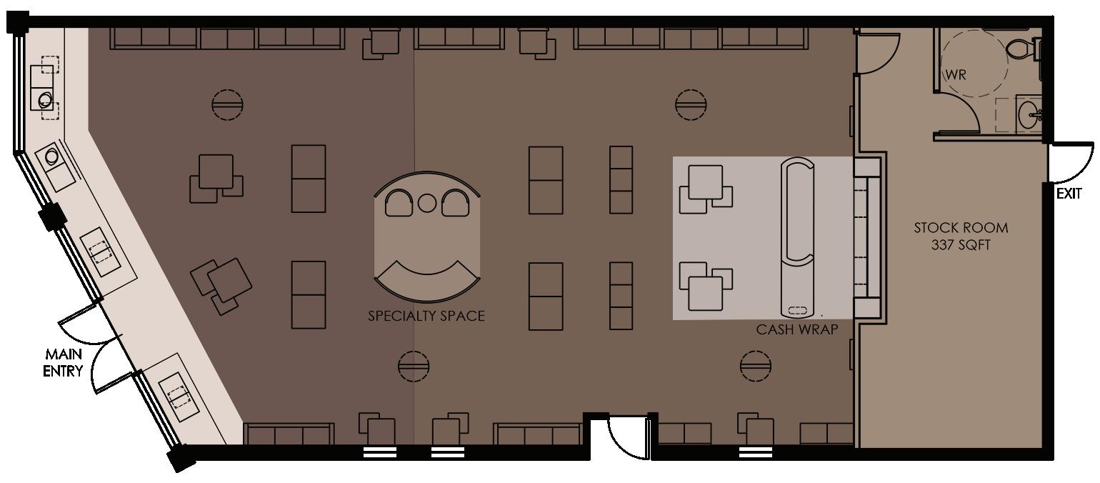 The design focuses on integrating strong architectural elements throughout the store to create a cohesive and visually engaging environment. ADA-compliant circulation paths and restrooms ensure accessibility for all users. The brand identity is reinforced through the use of curved, custom-designed elements that reflect and emphasize the store’s logo, creating a consistent and memorable experience.