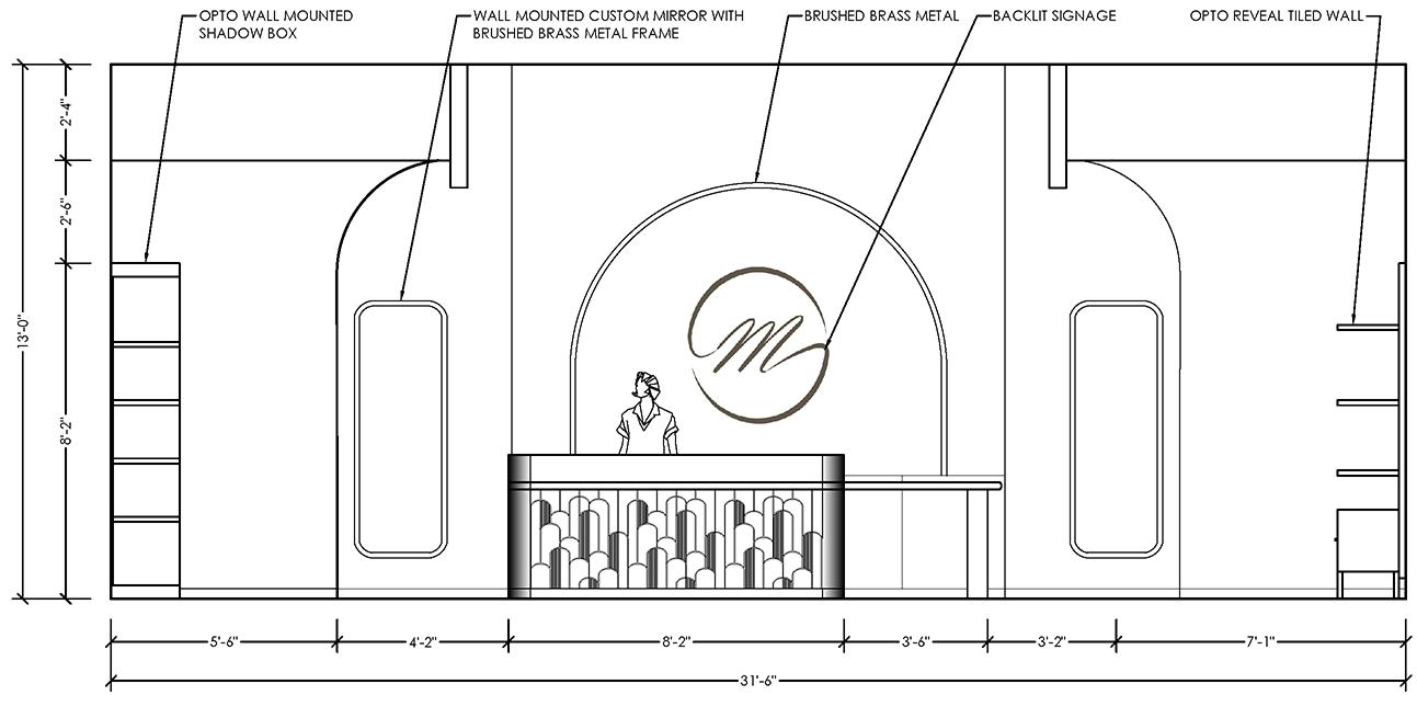 For this project, incorporating Opto Systems was a requirement, leading us to select the Reveal Collection. This collection introduces a feminine touch to the space with its soft curved edges and elegance. The fixtures serve as a subtle yet sophisticated foundation for displaying an array of curated products, including handbags, perfumes, sunglasses, bandanas, and bag charms. A custom feature that Opto provides is integrated lighting, and that is included in the wall fixtures.